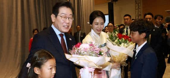 韩国总统李在明访问日本,第一夫人金惠景身穿民族服饰,和金建希的幼态脸截然不同。