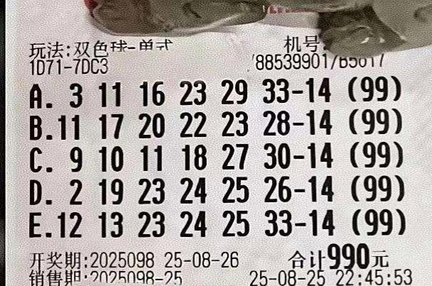 双色球25098期晒票,多组复式票和单注倍投迎好运