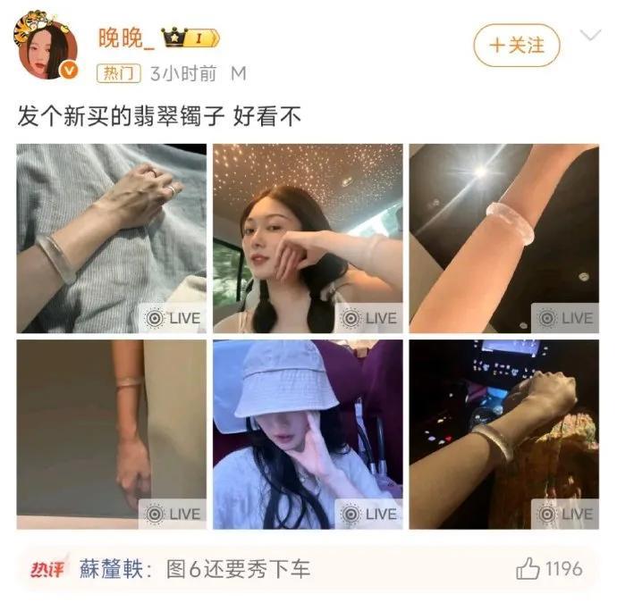 晚晚晒新镯引热议:玻璃种成色尽显贵气,稀缺品质背后是藏不住的好状态 晚晚近日在社
