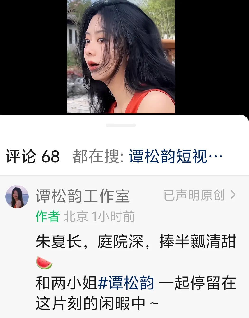 来一组惊艳四座的两小姐! 看来兰香的家,这一方水土真的很养人,我们松韵格外妩媚,娇羞极啦! 松韵穿着火红的无袖上衣和短裙,扎着高丸子头,用火红的发圈绑着,这个女人状态真好,笑的甜如蜜呀! 不管别人了! 谭松韵工作室配的bgm是: 爱情讯息, 糟糕是心动的感觉! 哎哟,谭松韵你是悄悄恋爱了吗?爱情的信息,看你满脸桃花色,幸福的模样!如果恋爱了,替你高兴,如果没有,继续加油哦!