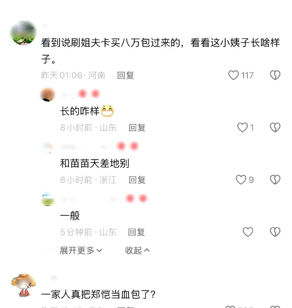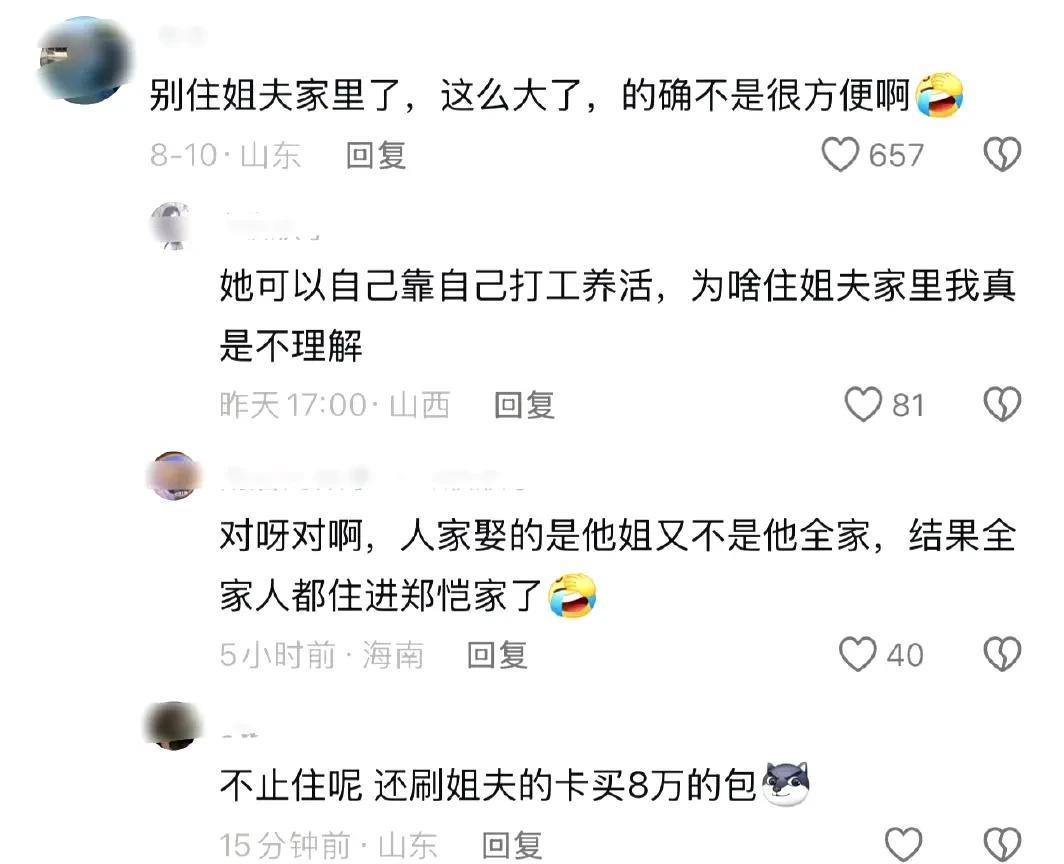 苗苗的口碑变了!想不到郑恺娶的不是苗苗一个,而是苗苗全家,苗苗妹妹大学刚毕业就刷姐夫的卡花8万买了一个包包; 更令人诧异的是,苗苗全家居然都住郑恺这里,苗苗妹妹还经常穿着很暴露的服装在姐夫家里热舞,不管怎么说,作为成年人,苗苗妹妹住姐夫家很没边界感。 虽然郑恺否认了传闻,但还是有很多网友认为,娱乐圈只要有流言蜚语传出来,基本就是八九不离十地比传闻更恶劣了。 图8-15为郑恺小姨子社交账号评论区,全是来问8万多的包的