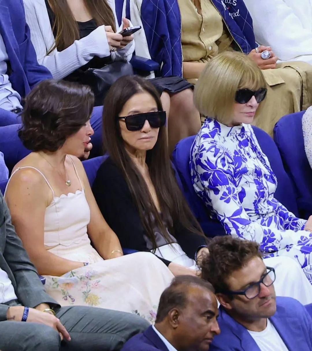 75岁的安娜·温图尔与76岁的王薇薇(Vera Wang)共同亮相2025年美国网球公开赛开幕之夜。