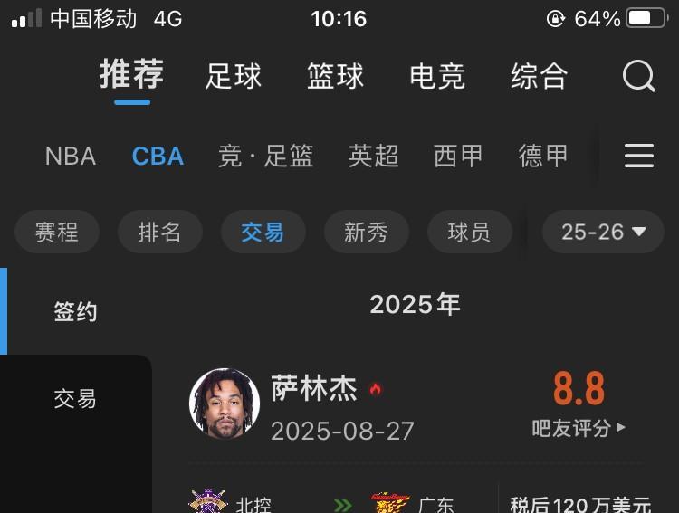 重磅!广东宏远强签萨林杰,据权威媒体显示,萨林杰已经被广东宏远以税后120万美元