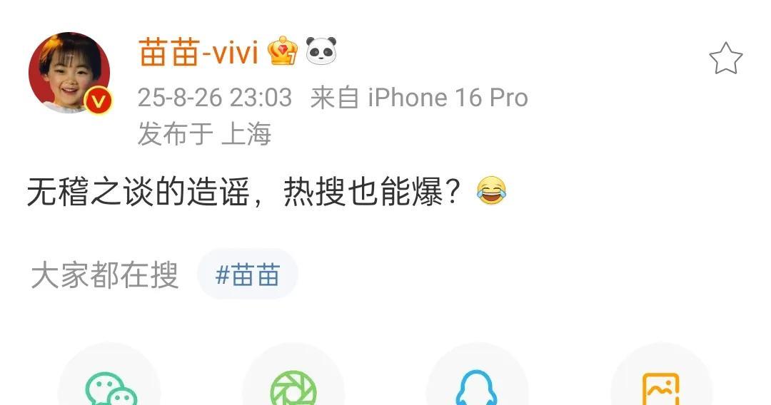 苗苗妹妹忍不住自己出来回应了,发文称自己没有做错任何事,从来没有花过郑恺苗苗他们