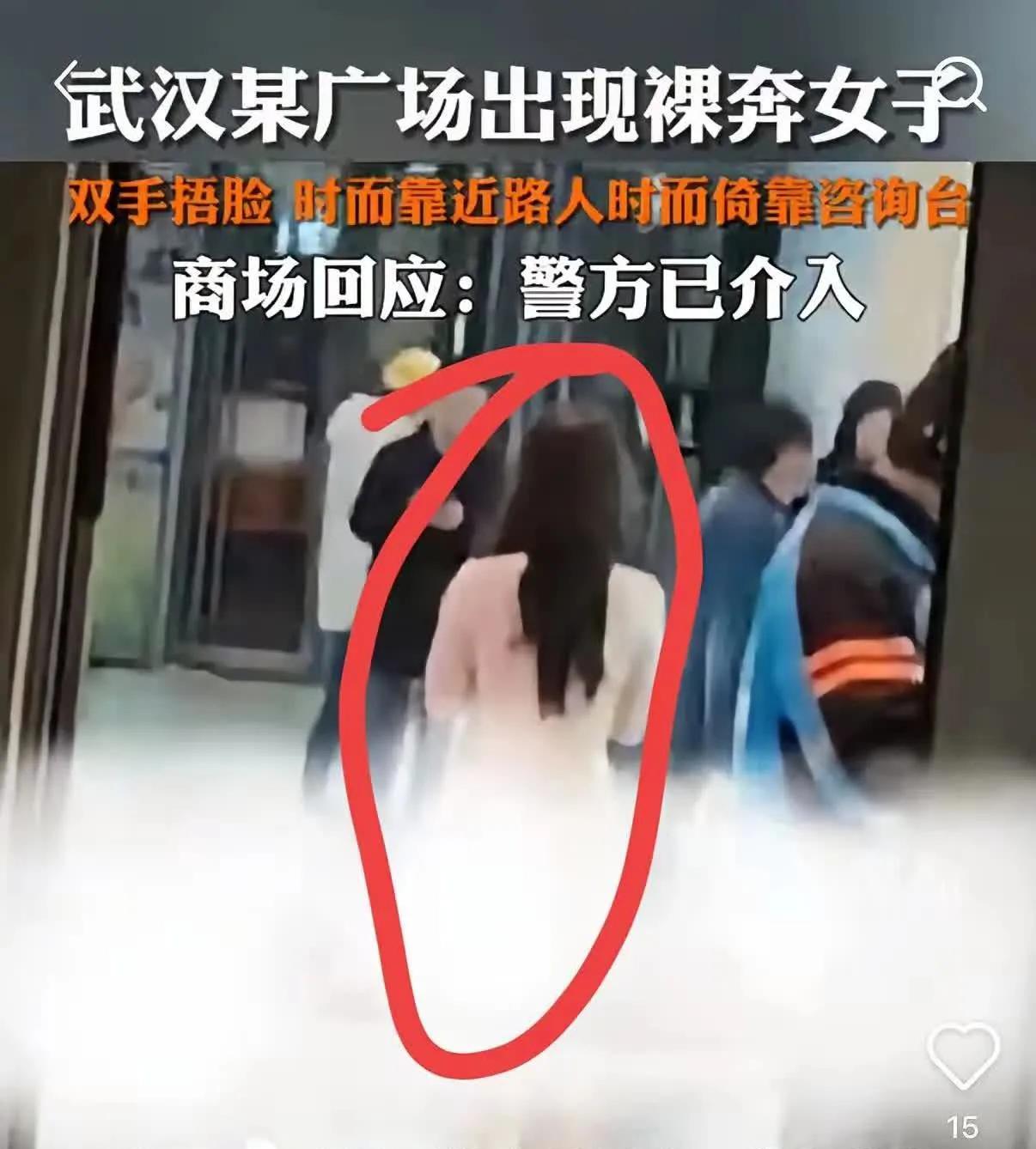 太炸裂了,为了报复男友女孩竟然… 武汉一大商场内,一女生因情感关系不顺,竟然在大商场内不顾,不顾路人一丝不挂的肆意裸奔… 炸裂吧?我看到这个新闻,我简直就不敢相信是真的,可是有图有真相啊。 画面中女子全身赤裸,身边不时有路人经过,一直捂着脸在商场内走来走去。 究其原因才发现是因为她男朋友出轨了她的闺蜜,导致她一气之下在商场内脱衣服裸奔!