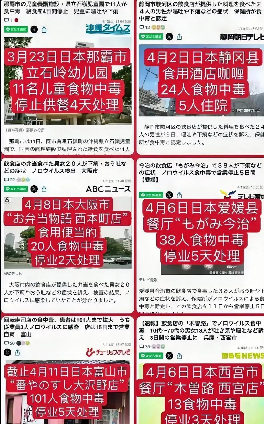 有图有真相,打脸鼓吹日本食品安全顶级的国人! 国内只要出现食品安全问题就会让一批人吹不如日本,但是日本食品安全并不是铁板,仅仅就曝光多起食物中毒事件,包括东京、鹿儿岛、歌山县、滨松市、大坂、静冈等多个地区,遍布幼儿园、便利店,酒店旅馆、餐厅,养老机构等。而且处理大多就是停业几天,并没有吊销营业执照等严厉处罚! 如果中国发生这么多中毒事件,有些人肯定跳起来了。我们确实有不完善的地方,但是日本也不是什么都好,不能双标! 鼓吹日本是世界上食品安全监管最严格的人,还是动点脑子,做个调查,实事求是吧!
