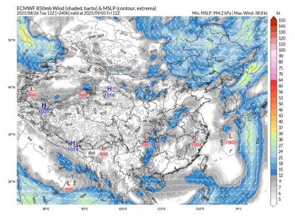 【中期天气预报】最新报来看未来十天影响我国冷空气频繁,路径活动偏北。对副高打击