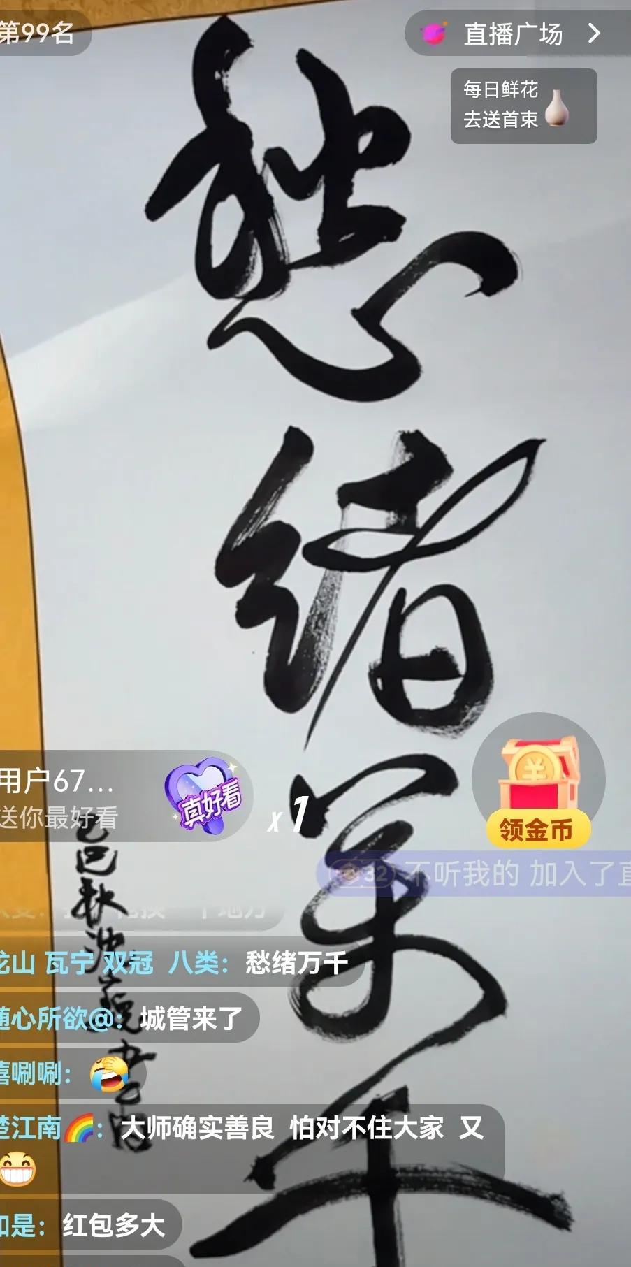 沈老师今天终于还是宣布暂时不再写字、画画了,不陪小主播们玩了,后续可能自己会偶尔开播,出去游玩了,享受独自美好的时光。 究其原因是多方面的,长期写字画身心疲惫,基地纷争不断,个人也是不厌其烦地想静一静。 有人想让老师写下此时此刻的心情,他写了“愁绪万千”四个大字,这和当年的孔子一样,颠沛流离,不被重视的情感应该差不多吧!