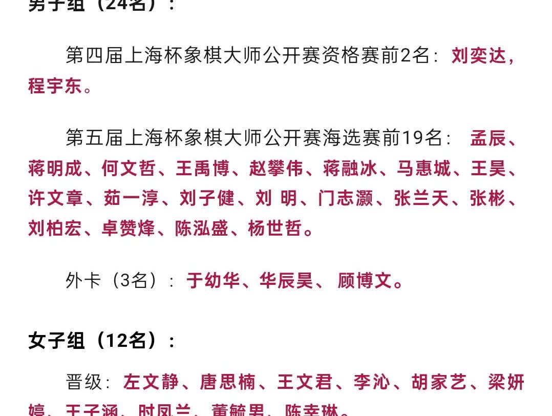 上海杯外卡无曹岩磊。 第五届上海杯象棋大师公开赛正赛定于9月22日至27日在上
