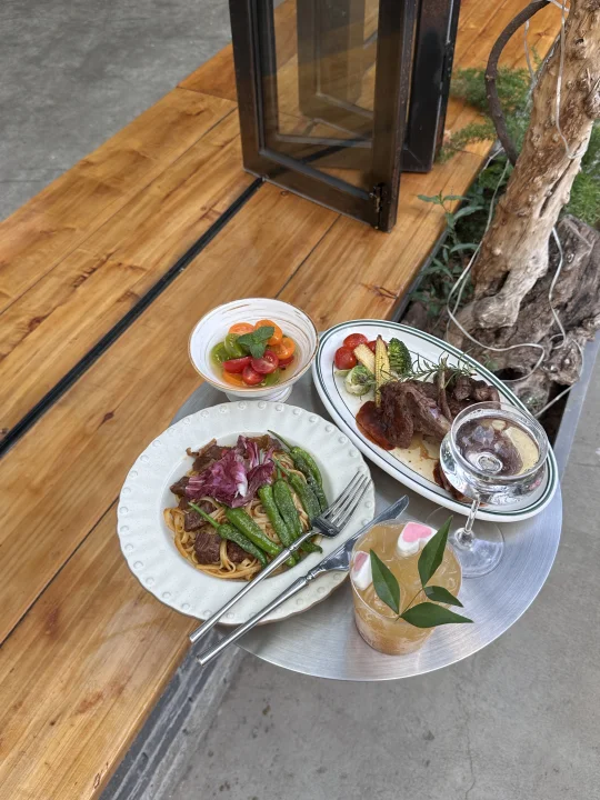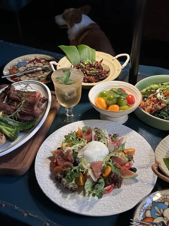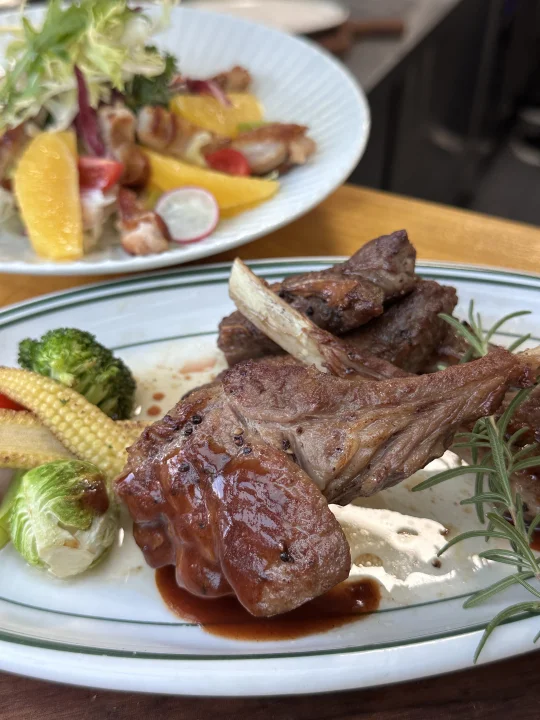 适合一人食/二人食的约会漂亮饭 装修很小众、院子里还有一个丝瓜棚、很好的诠释了一半诗和远方一半生活~ 氛围感手拿把掐🥪( ・x・ ) ◞𐂐 - 炭烤牛肋条配新西兰羊排佐红酒汁,辣牛肉烩意大利扁面好好吃….
