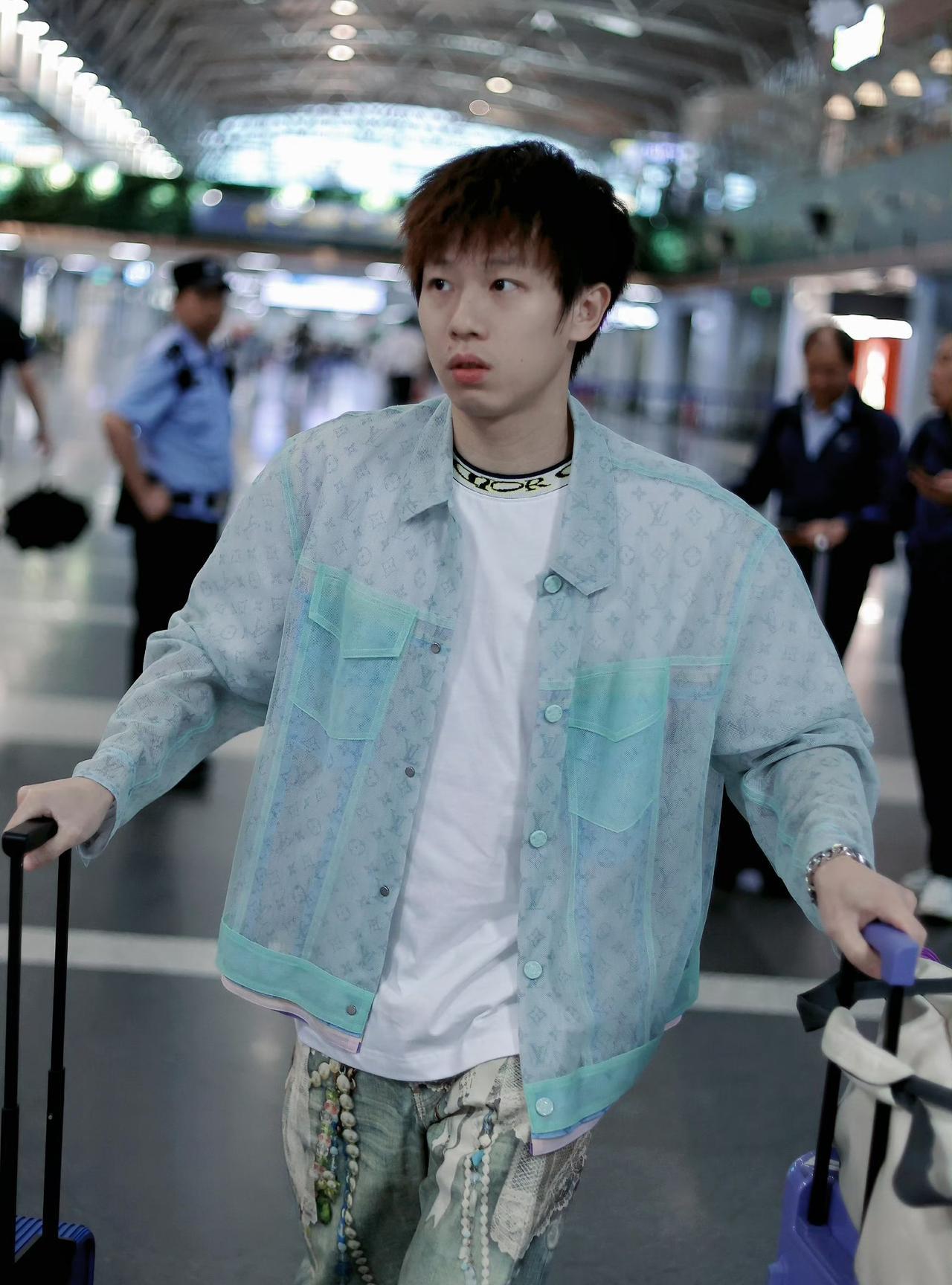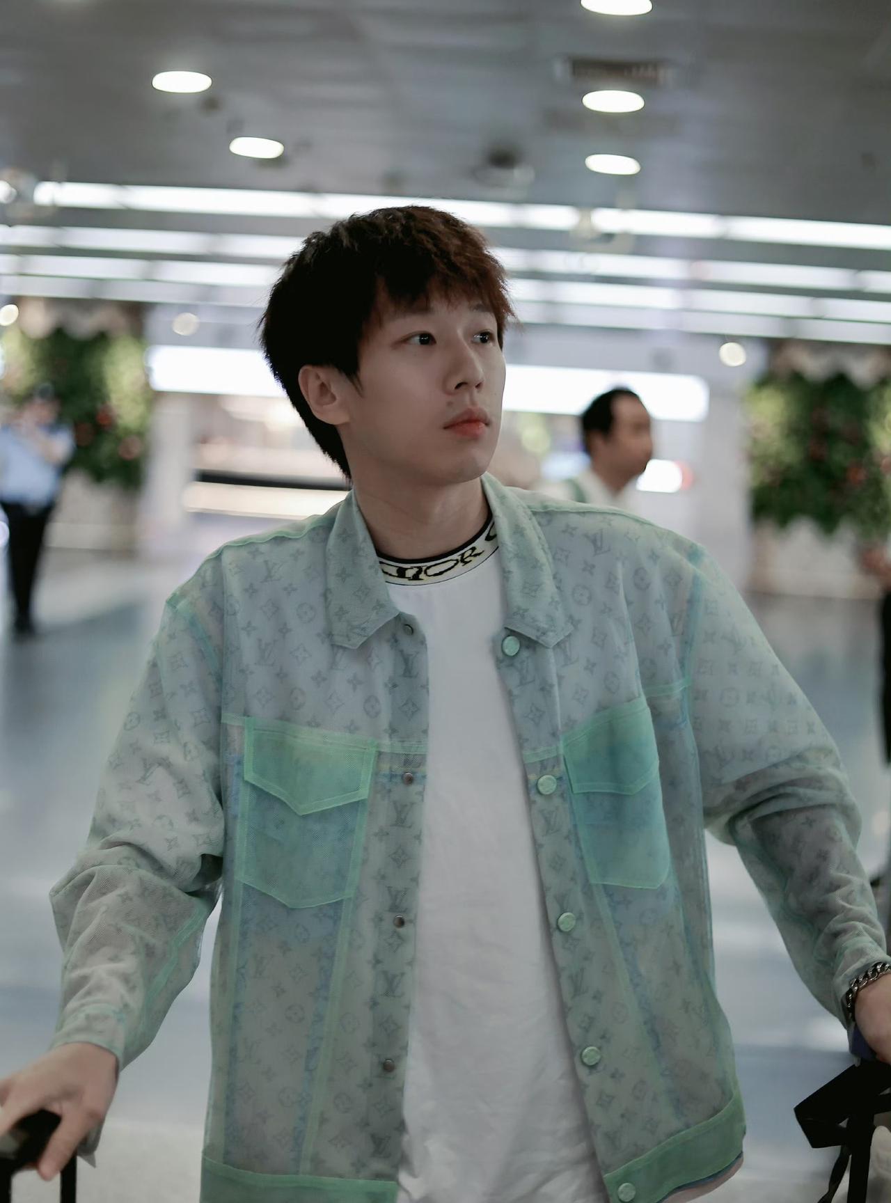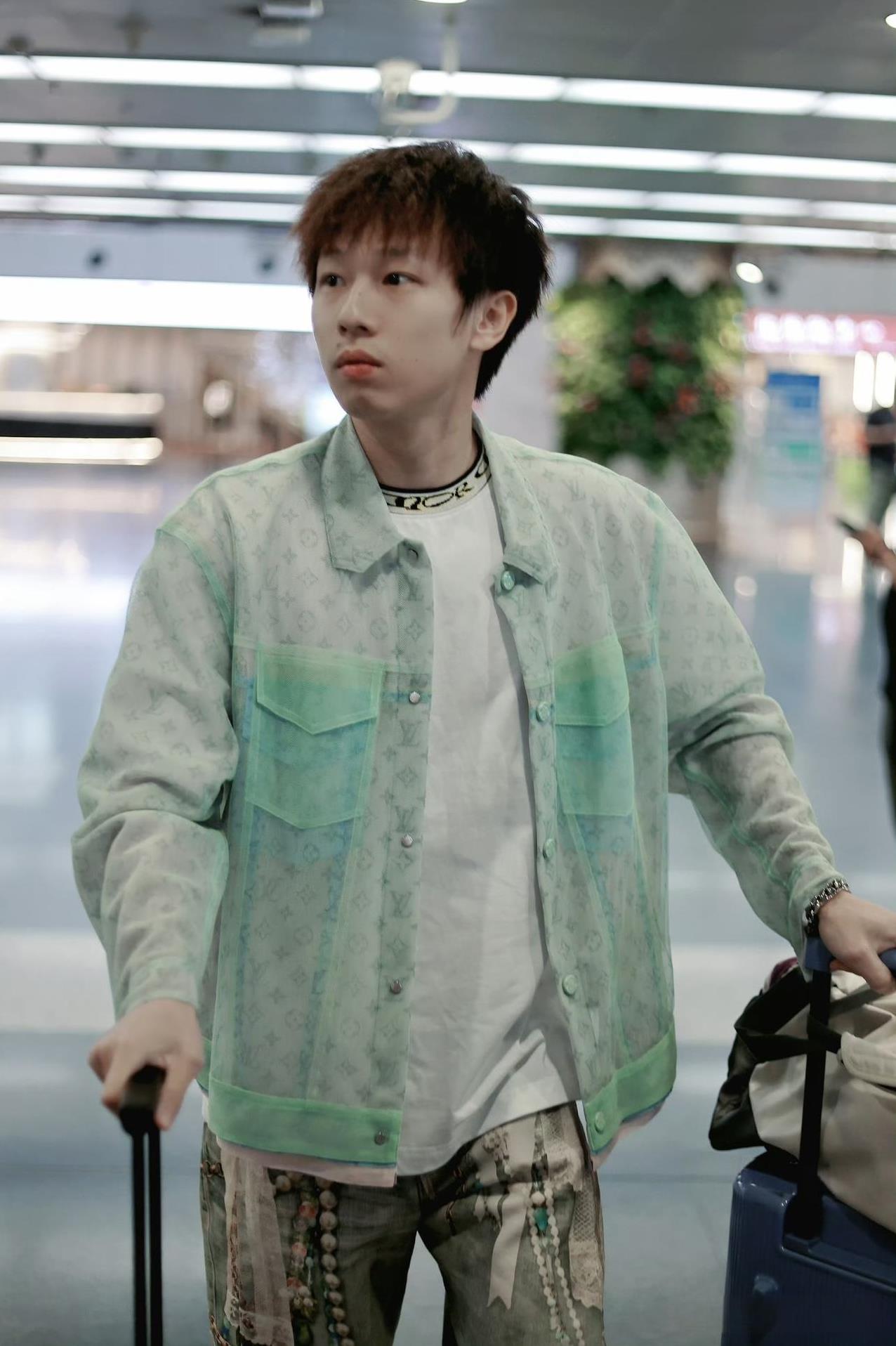 林高远身穿一套薄荷绿,像是开学季的大学生走在机场上,看上去就是清清爽爽青春男大一