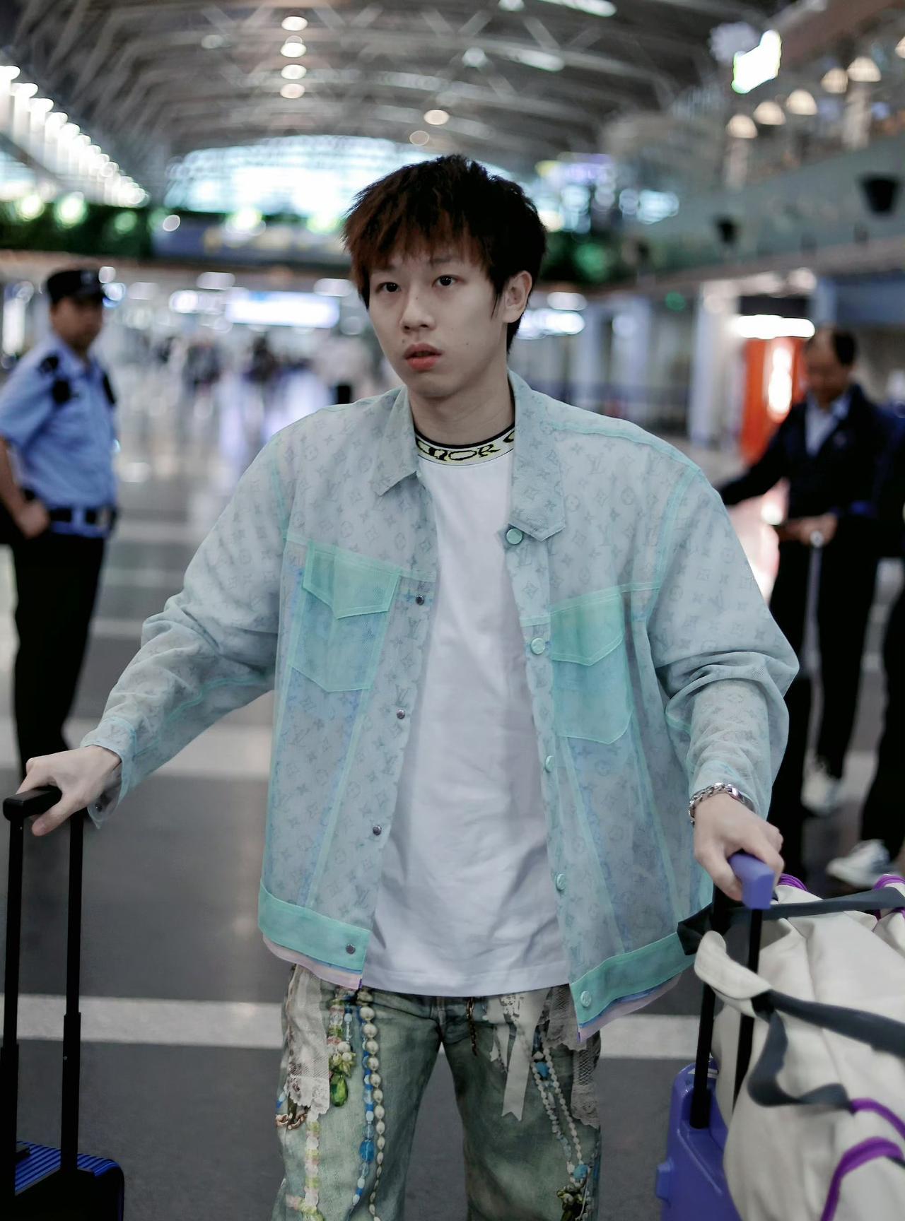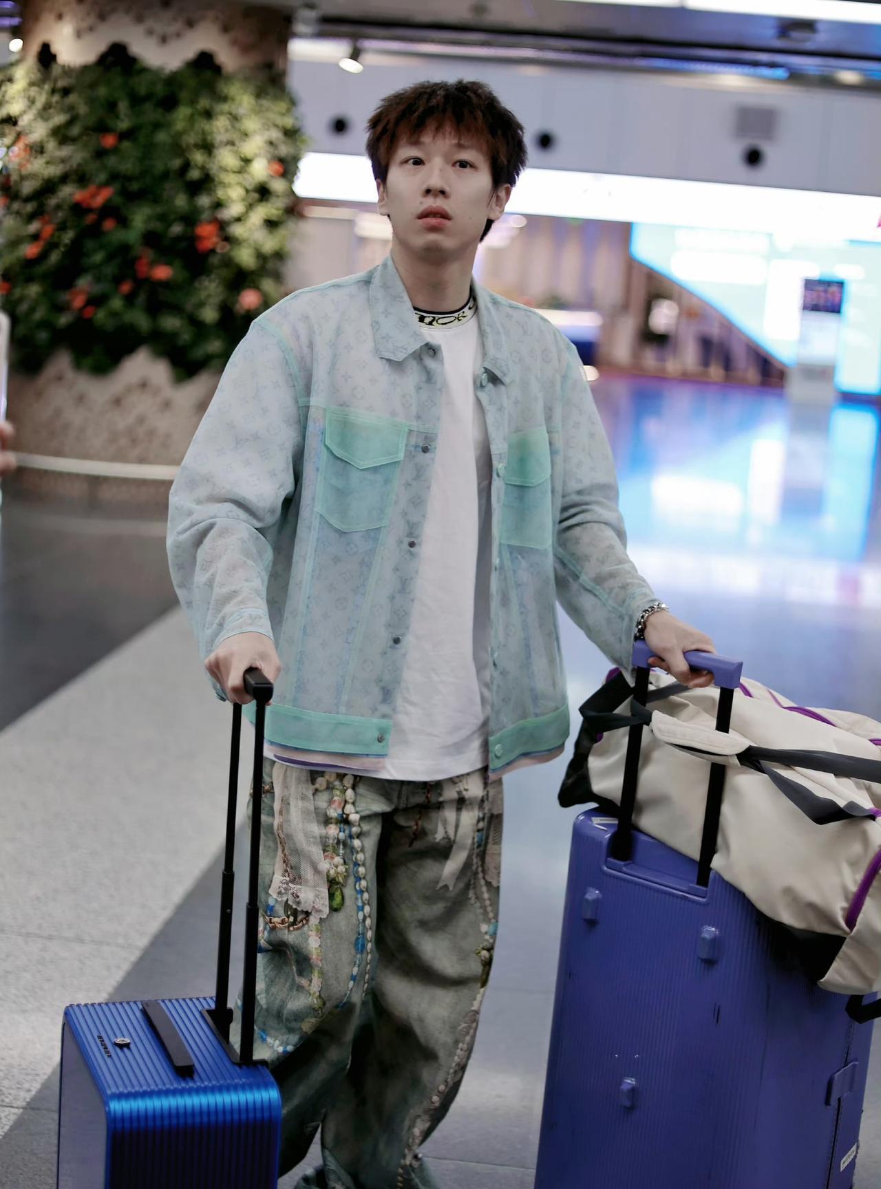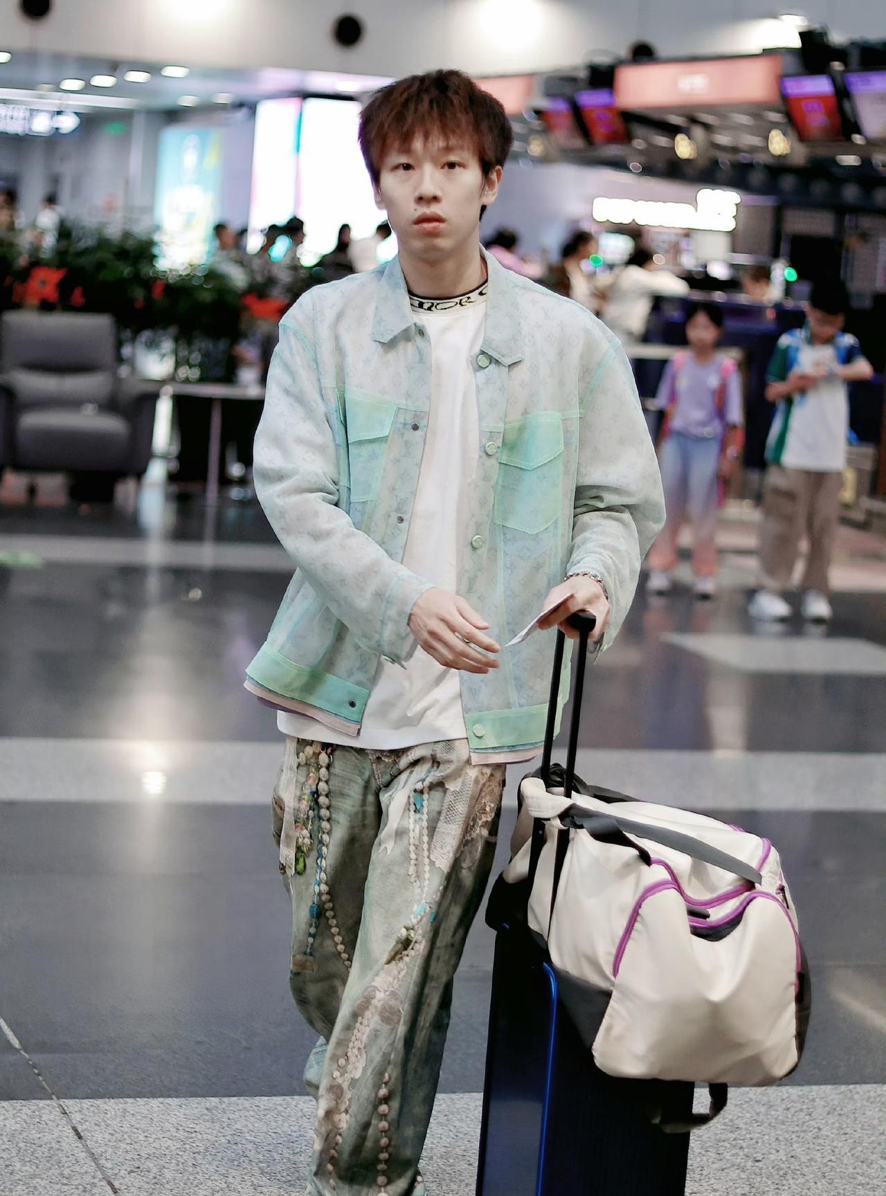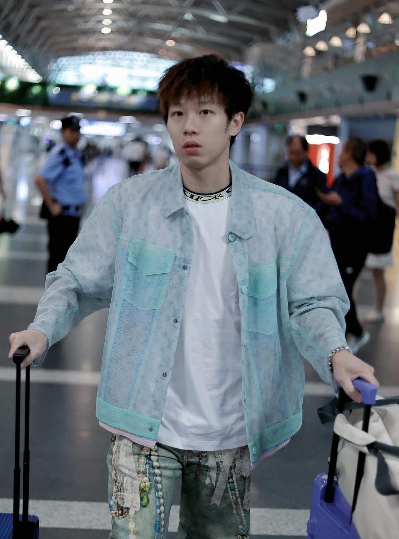 林高远身穿一套薄荷绿,像是开学季的大学生走在机场上,看上去就是清清爽爽青春男大一