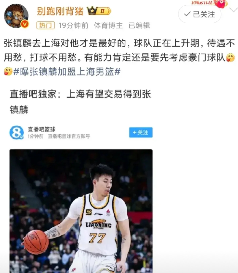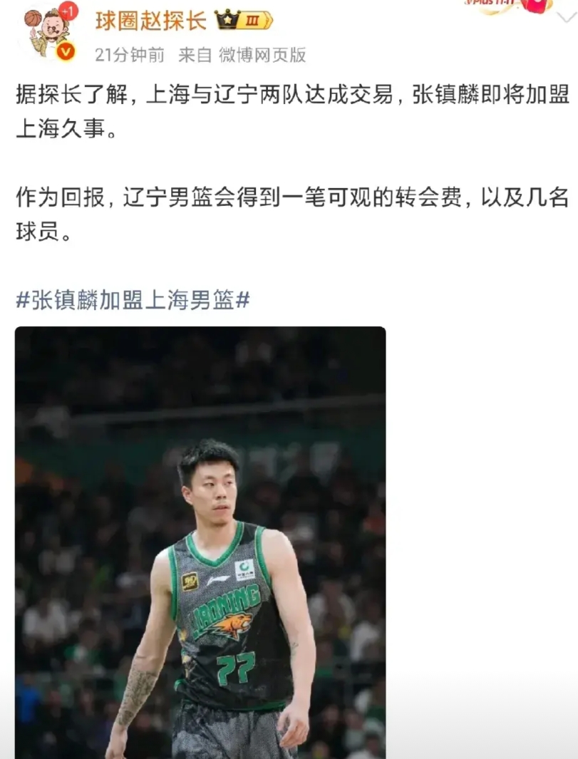 辽宁的自媒体和球迷睡了一会午觉,醒来发现……天塌了 此前球队绝对核心郭艾伦只换来一个租借球员不说,现在辽宁锋霸,曾在对阵强大的广东队的比赛中狂砍46分的张镇麟就只换了点钱,另加几个不知名的球员,这你们受得了 哎,为什么像郭艾伦和张镇麟这样的当家球星动不动就想离开豪门,辽宁队真该反思一下了