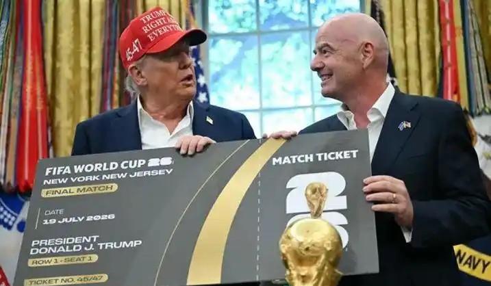 特总的办公室,从国际足联主席因凡蒂诺手里强行留下的大力神杯被放在了办公桌左手边。 还特意用黑布蒙上,玻璃罩子给盖上了,这是图什么呢? 你都给硬切到手了,还不大大方方地展示一下,藏着掖着的那你留它干啥? 人家真正的得主冠军切尔西俱乐部里已经摆上赝品,你兜里已经收到了国际足联送的2026年世界杯决赛巨型纸质版的首张门票,面子足够大了,办事还是这么小家子气,真够可以的。