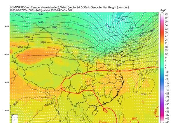【冷空气蓄势待发】最新报来看 月底西风槽压打击副高信号已经明确。显然环流形势也在逐渐变化。绿色降温信号向江南推进。高空槽雨带向南压。未来副高北上,但同时北方冷空气变活跃,季节转换正在逼近。