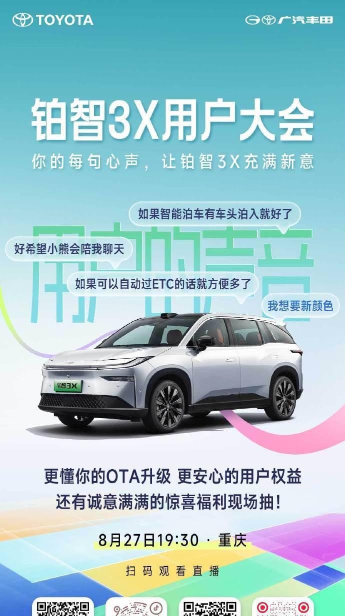 广汽丰田铂智3X用户大会:以“新势力”之姿,开启用户共创新纪元 本次大会的一系列重磅亮点:行业首推安全承诺,让用户风险可控;发布铂智3X OTA升级路线,回应智能技术是否靠谱的关切;与新老车主交流共创,全方位优化服务体系;更有车主福利惊喜彩蛋。 长久以来,新能源赛道上“新势力”被视为激进颠覆者,“合资”则常与稳健守旧挂钩。但广汽丰田借铂智3X打破这一二元对立,在产品、政策、生态与服务等多维度展现“新势力化”姿态,实现体系化转身。产品上,15万内首搭激光雷达和大模型;政策上,首创“双终身兜底”;生态上,联合华为、小米、Momenta 等中国科技力量;服务上,融合个性化沟通与广泛渠道。 铂智3X用户大会不只是车主的一次聚会,更是一份宣言:合资车企也能比新势力更彻底,不转嫁责任、不“炫技堆料”。此次大会是广汽丰田与用户的共创起点,或成行业格局重写转折点,让我们一起拭目以待。#广丰即将推出重磅安全承诺#