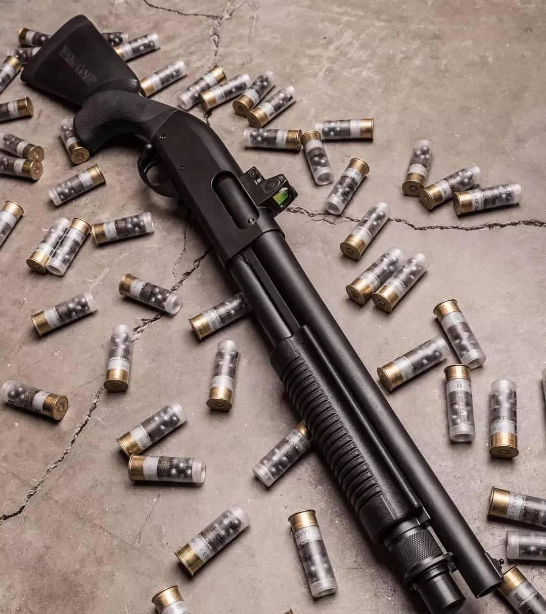 五连发猎枪,本名叫来福枪,因为膛内有来复线,所以又叫来复枪,他的原理非常简单,他的弹仓在枪管下方,是管状弹仓可一次填五发子弹(散弹),使用时将弹仓管后拉即子弹上膛弹壳随之退出,这种枪威力巨大,常用于打猎,军方很少使用,一些安保部门也在使用。