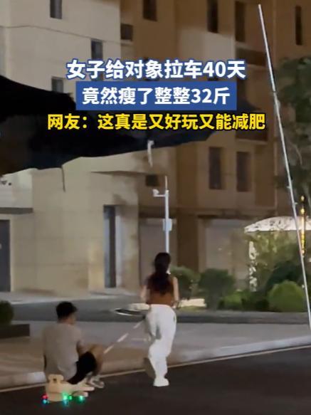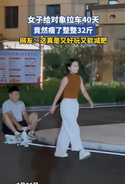 “彻底解释不清了!”8月26日,河北,一女子为了快速减肥,竟买了辆儿童小车,每天晚上,让对象坐在上面,自己则在腰上绑根绳子,天天拉着对象跑步,40天的时间,竟然瘦了32斤,对象开心,女子也开心,网友:一举三得! 这女子之前一直琢磨着快速减肥,试过不少法子,效果都不怎么好,后来不知道从哪儿想出来个主意,直接买了辆儿童小车,到了每天晚上,天稍微凉快点儿的时候,她就让对象坐到儿童小车上。 自己则牢牢绑上一根绳子,另一头牵着小车,然后就拉对象跑步,一开始,周边邻居晚上出来散步,看到这场景都纳闷儿,好好的大人,怎么拉着儿童车跑,车上还坐着个大男人? 有的甚至还悄悄议论,不明白这是在干啥,可女子不管别人怎么看,每天都坚持这么做,就这样一天天过去,足足坚持了一个多月,让人没想到的是,女子一称重,竟然瘦了30多斤! 之前穿不上的衣服,现在穿上都松松垮垮的,整个人看着也精神了不少,她对象也特别开心,本来晚上总爱窝在沙发上刷手机,现在跟着女子出来,虽然是坐在小车上,但能陪着爱人,还能吹吹晚风,比在家待着舒服多了。 这事儿被传到网上后,网友们都炸了,纷纷留言说这是“一举三得”的好事儿,一来女子成功瘦了身,达成了减肥目标,二来对象多了陪伴的时间,还能呼吸新鲜空气,三来增进了两人的感情。 其实减肥的法子有很多,但像这位女子这种方法能坚持下来的,还真不多,关键是她找到了适合自己的方式,还能让身边人一起参与进来,这样的减肥过程,自然更容易成功。 信息来源:《女子给对象拉车40天,竟然瘦了整整32斤》云视档案放映室