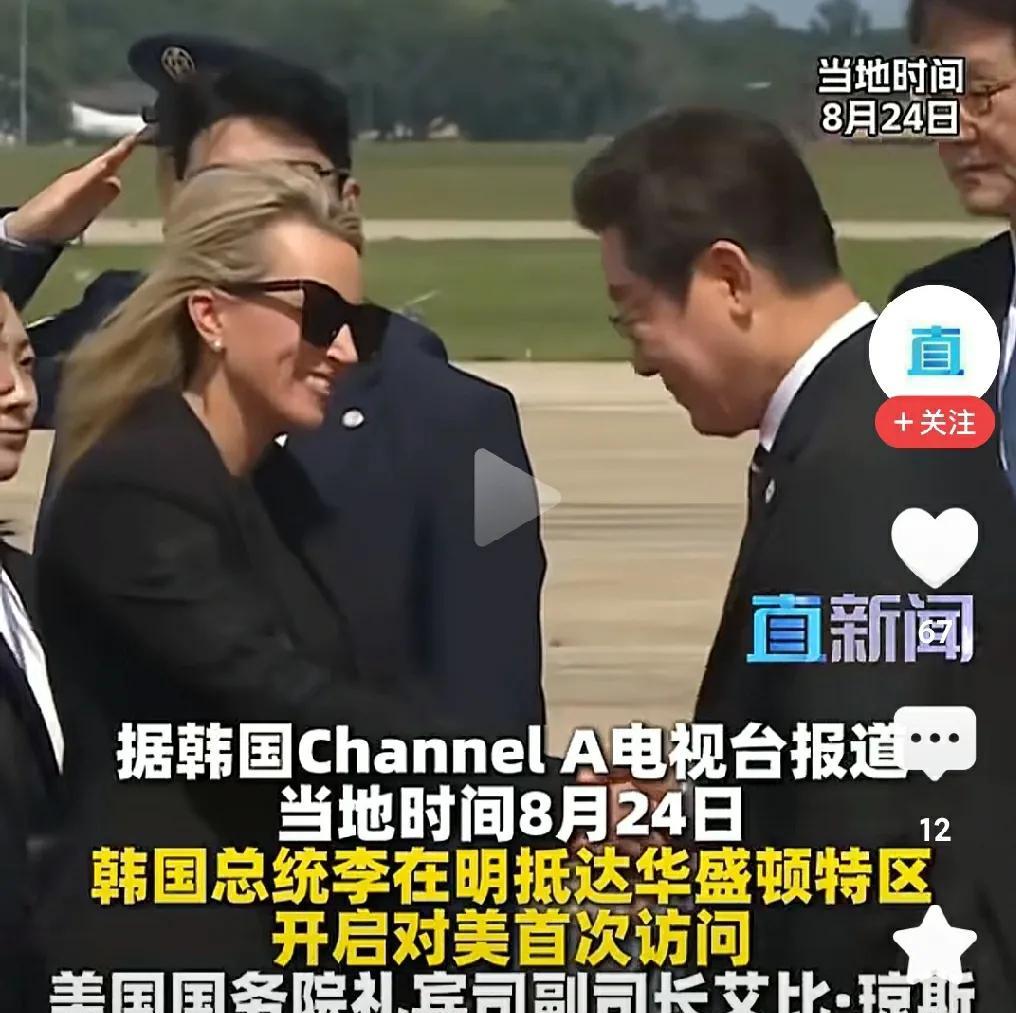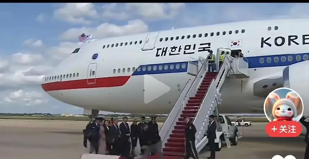 a、这应该是【李在明】作为总统第一次访问美国吧。我不知道当飞机舱门打开后他和夫人