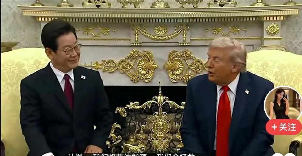 a、这应该是【李在明】作为总统第一次访问美国吧。我不知道当飞机舱门打开后他和夫人走下飞机舷梯看到机场的那一刻心里是个什么滋味。迎接他的是美国国务院礼宾司的一个女性副司长,而且还全程戴着墨镜。反正要是韩国人觉得没什么倒也无所谓。可能他们也习惯了。毕竟红地毯都是韩国人自己带的。可能是他们嫌弃美国人的地毯质量不好吧。 这也太不拿人当腕了。但韩国人可能觉得这没什么,“又毕竟”两家亲似爷儿两,就不讲就那些俗套礼节了。 b、既然两家是亲戚,那李总在川总面前坐着的时候能不能放松点。干嘛坐的那么笔直。你没看你家川总坐的那么随意吗?人家也没有特意要求你怎么坐。更何况川总的西装扣子都没系。你又干嘛那么正襟危坐的。 习惯,就是习惯。这就是一种传承下来的自然流露出来的习惯。李总那时候根本就没有意识到自己有什么不妥。 这样的“好习惯”要多少年才能培养出来啊!
