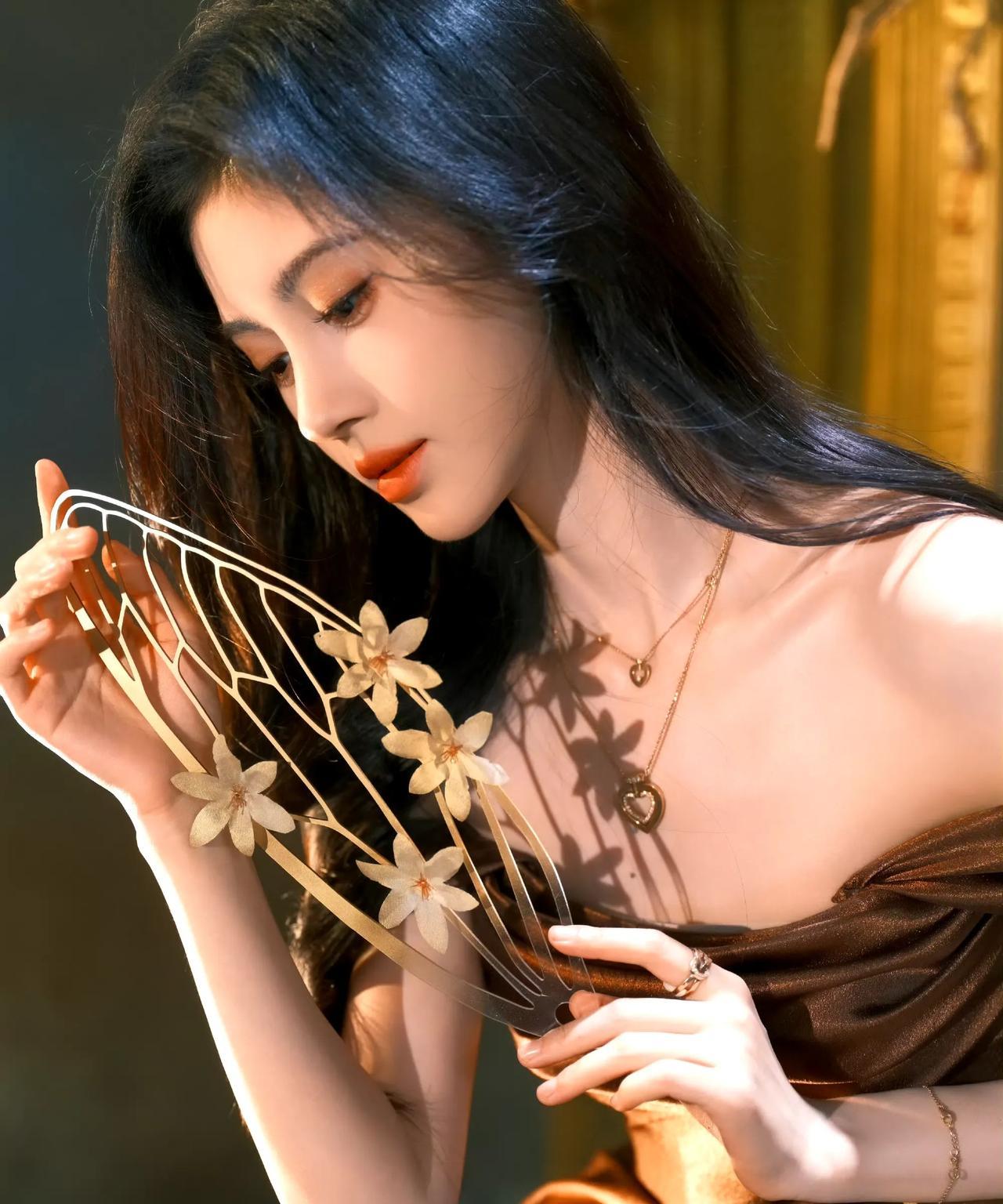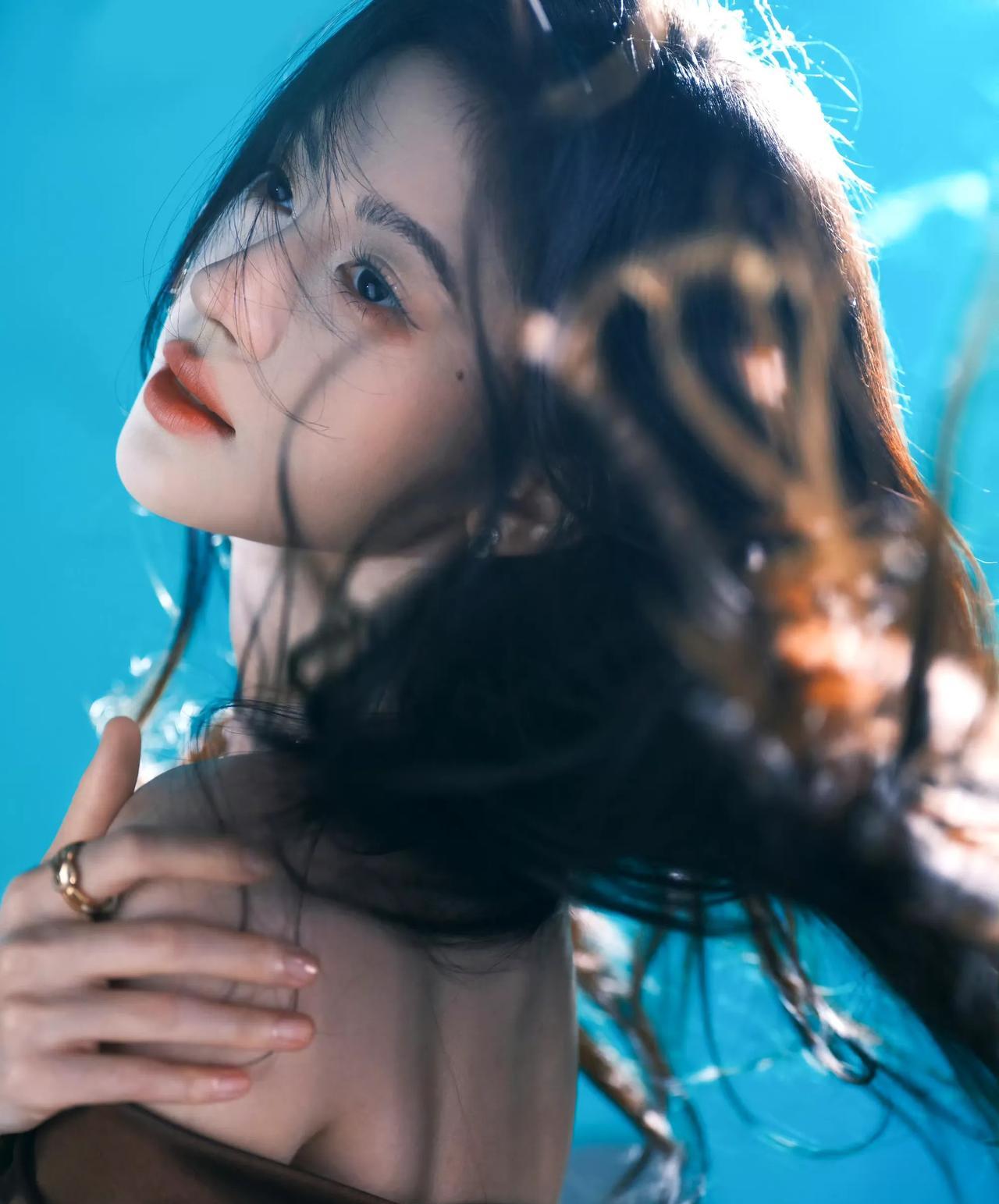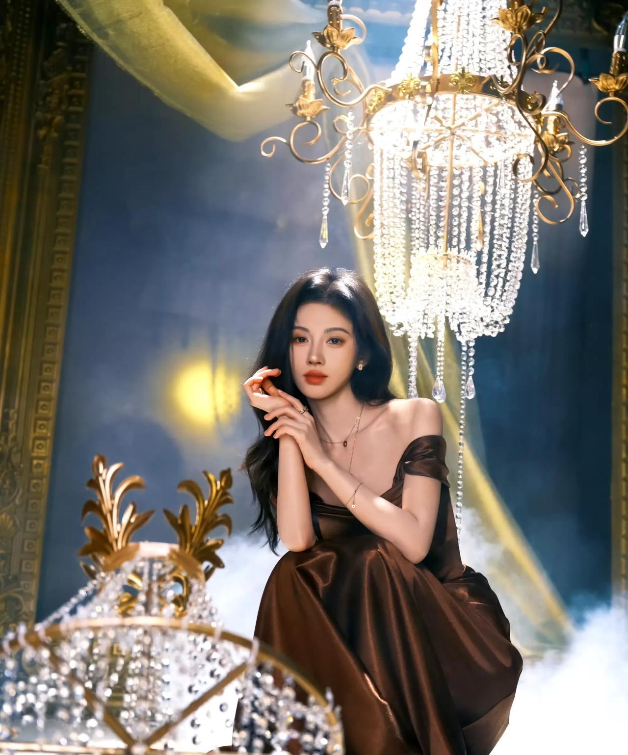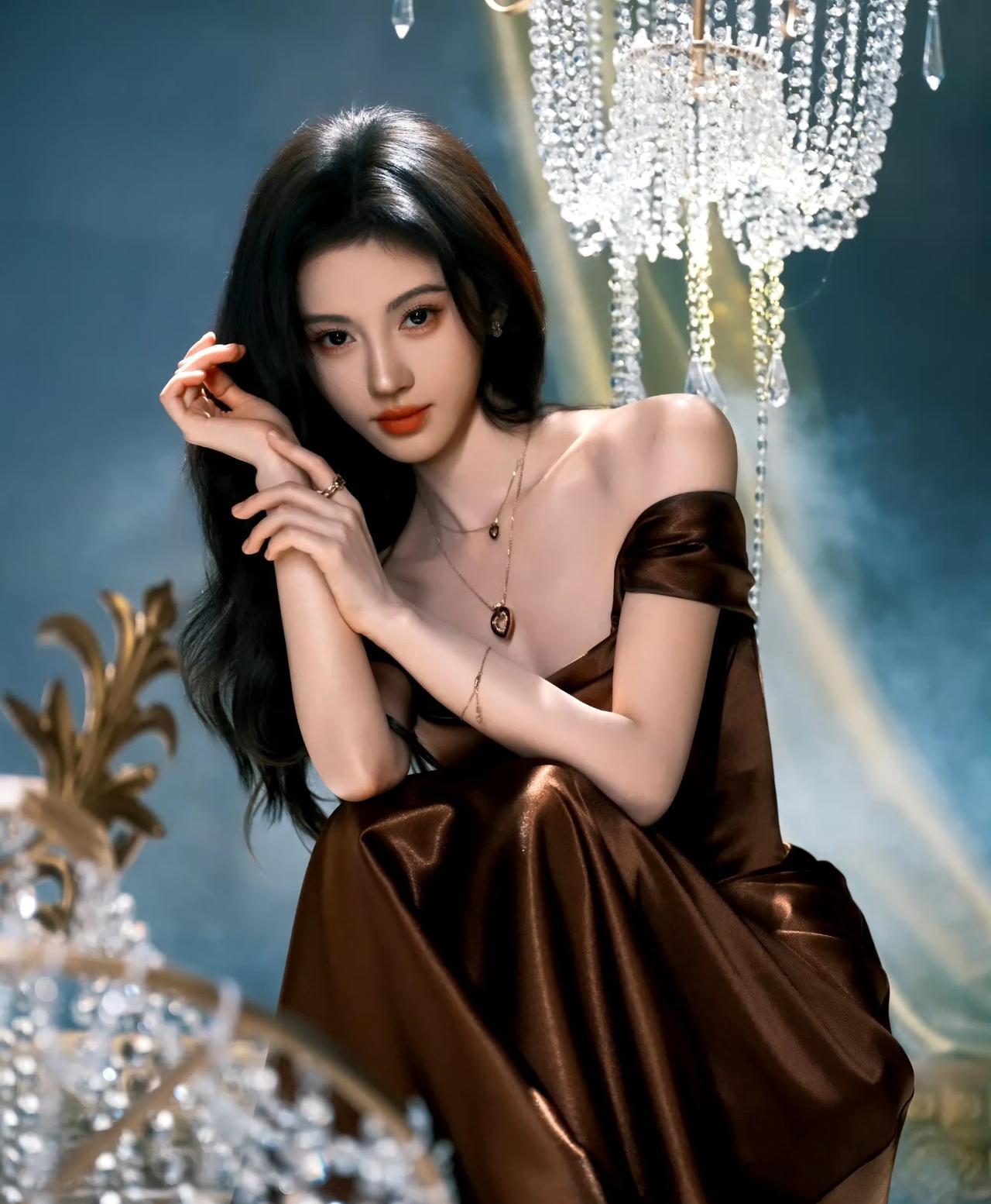 鞠婧祎的新造型!鞠婧祎受邀亮相怡丽丝尔品牌直播活动的造型发布,Ivan Yong特别定制的深棕色流光缎面裙自带高级质感,一字肩设计彰显肩颈线条优雅美丽,同时以FRED珠宝点缀闪耀动人!长发自然垂落飘逸而灵动,光影氛围下宛如神女下凡,仙气十足又不失复古贵气。好看时尚优雅女神范儿十足,时尚艺术感氛围满满。