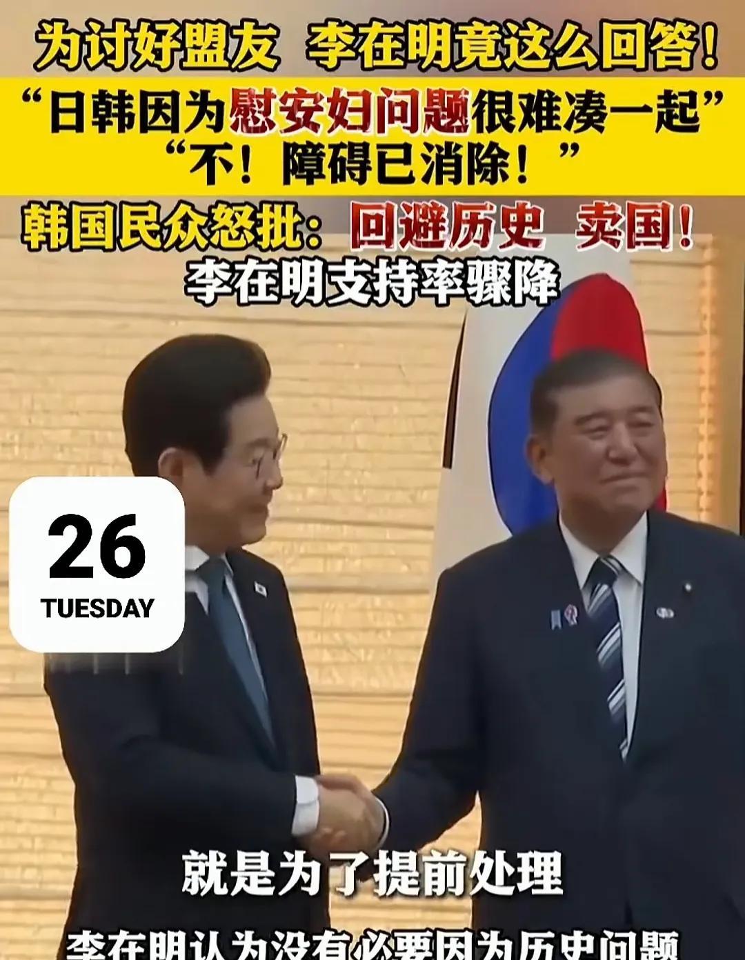 当初李在明绝食的时候,我认为他是个了不起的硬汉,可现在的种种行为,让我认为他是位奥斯卡演员。 上任以来,第一个出访的竟然是韩国同样的世仇日本,而且还直接说慰安妇问题已经清除,这直接让韩国民众破防,让日本民众乐呵。 接着带着十几个企业家几千亿去了美国,可这么高的投名状并没有赢得特朗普的尊重,欢迎仪式像村里举办运动会,握手还没结束人就跑光了,就连汽车都没给他插国旗,但是他依然迷之自信认为自己言语得当周旋有功。 美国之行结束,他竟然直接选择连环模式,定了去菲律宾访问,看来真的是升级了跪舔模式,为了让特朗普高兴,直接挨个跟美国的盟友搞好关系表忠心,甚至连国家颜面都不顾了。 可是,毕竟是你们韩国民众自己选的,能忍则忍,忍不了就也送他去跟尹锡悦夫妇团聚吧。