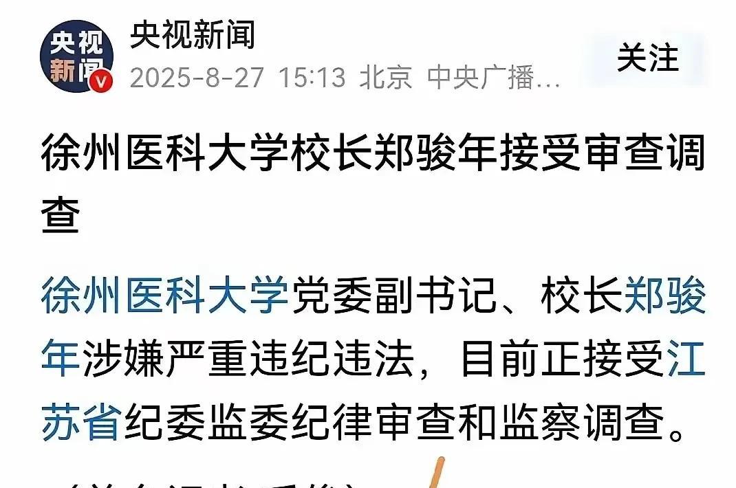 徐州医科大学的学生尴尬了, 校长郑骏年签发录取通知书还没捂热, 爆出校长郑骏年严重违纪违法被查。 给学生上了一堂生动的廉洁教育课。 这届学生毕业做医生不敢收红包了吧? #郑骏年#