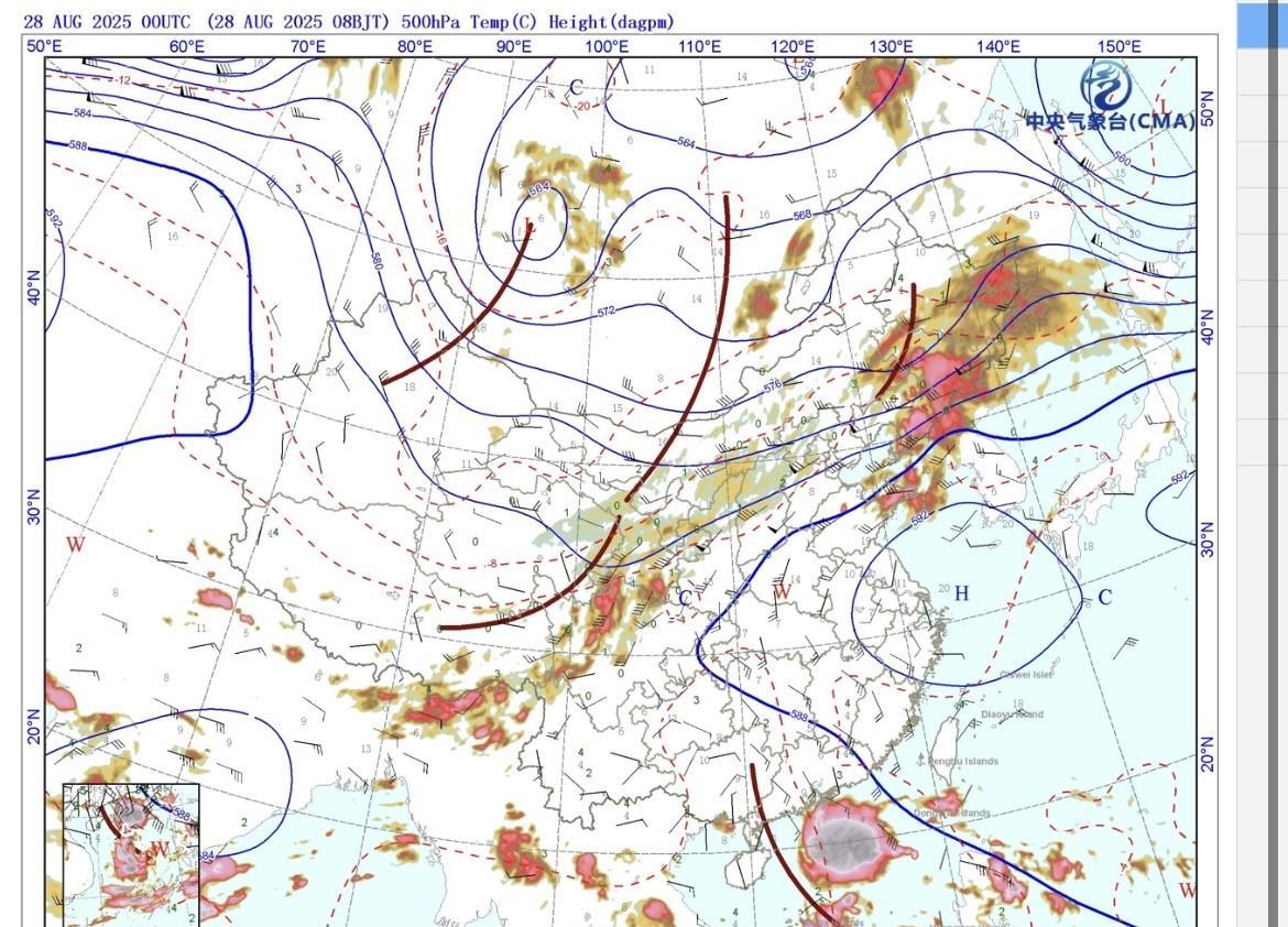 【天气观察】云图上看今天副高继续北抬同时华西和东北等地在冷槽过境下均出现降水