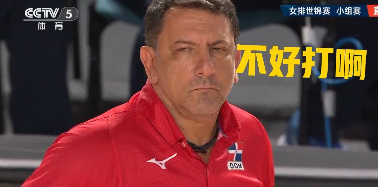 多米尼加女排教练郁闷地捂着脸,没想到今天中国女排打得这么好[呲牙] 多米尼加女
