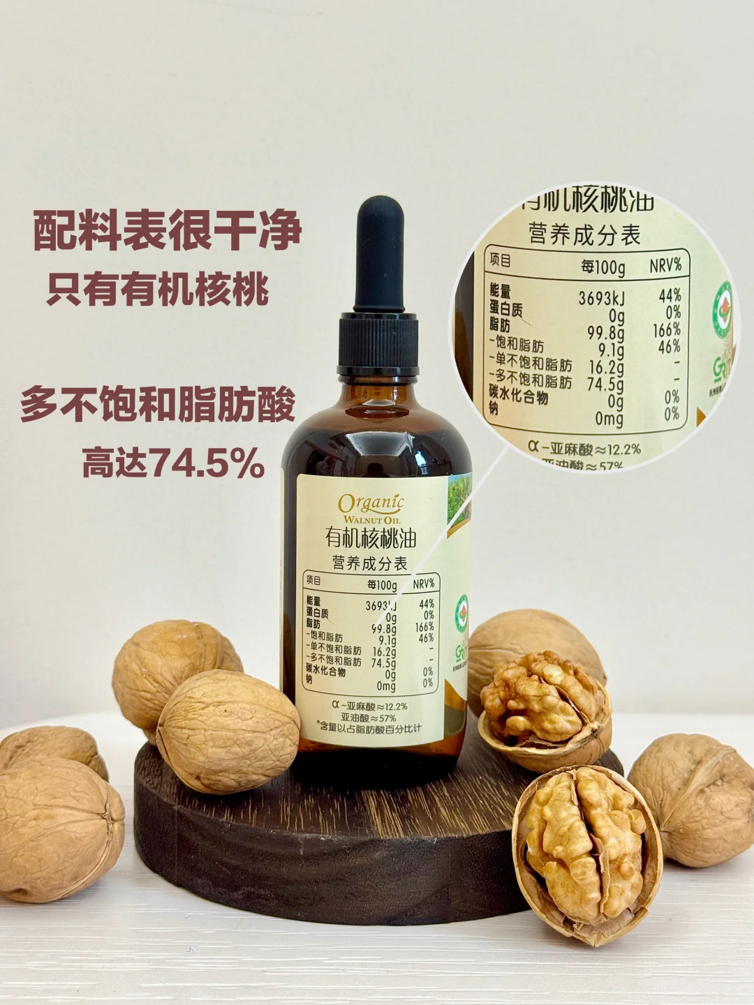 它的配料表干干净净,只有有机核桃~通过自有的超级工厂,一体化生产,采用低温冷榨工艺,保留核桃中的营养不流失,其中多不饱和脂肪酸含量更是直接拉满🐮高达74.5%!