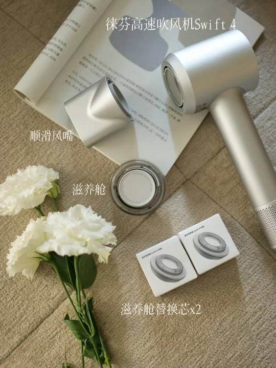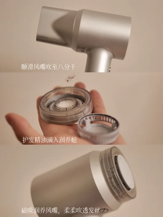 它还有磁吸的润养风嘴,吹到八分干的时候