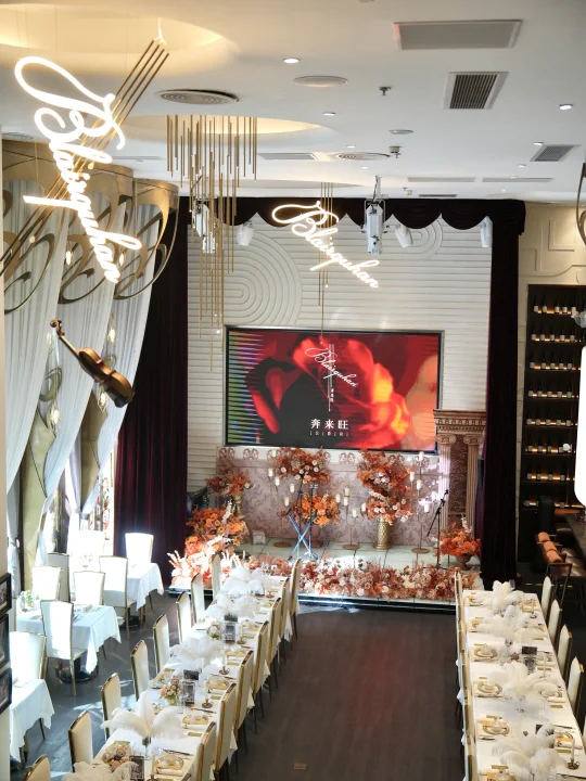 推开门那刻真的被美到失语!! 6米挑高的巴洛克穹顶洒下璀璨星光 烛光在古铜金与洁白厅堂间摇曳生辉 7.5米酒柜墙宛如贵族私藏博物馆 每一盏小提琴造型吊灯都在诉说百年故事 现场弦乐四重奏流淌着《月半小夜曲》 npy说这里像《女王》电影场景重现 没想到真是同源苏格兰Blairquhan古堡!