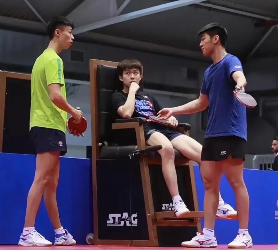 大头在京队养成的习惯, 已经延续到山东魏桥, 不好改,真的不好改, 一看到裁判椅, 他就想往上坐! 乒超第三阶段明天开拍, 上海飞乌鲁木齐的大头, 已跟队友汇合开始练球, 练着练着练累了, 又看到熟悉的一幕: 大头又坐上裁判椅, 看黄油跟七号对拉! 就像长年累月的训练, 已经形成了肌肉记忆, 对大头而言, 练累了坐裁判椅休息, 已经成了一种小确幸! 明天魏桥一日两赛, 上午11点对上海地产, 晚上7点对江苏中超电缆, 王楚钦,加油![奋斗][奋斗][奋斗] #记录真实生活#