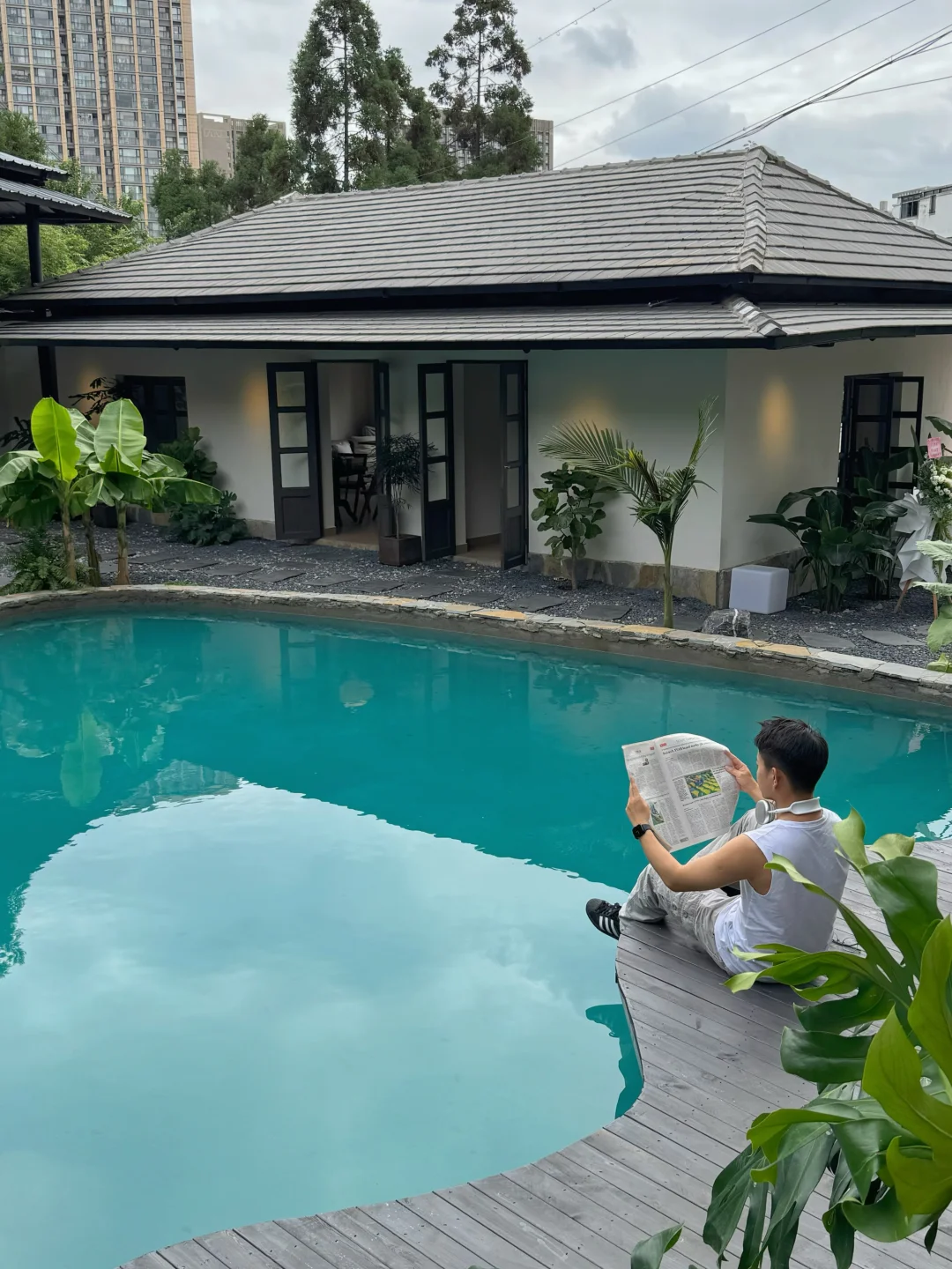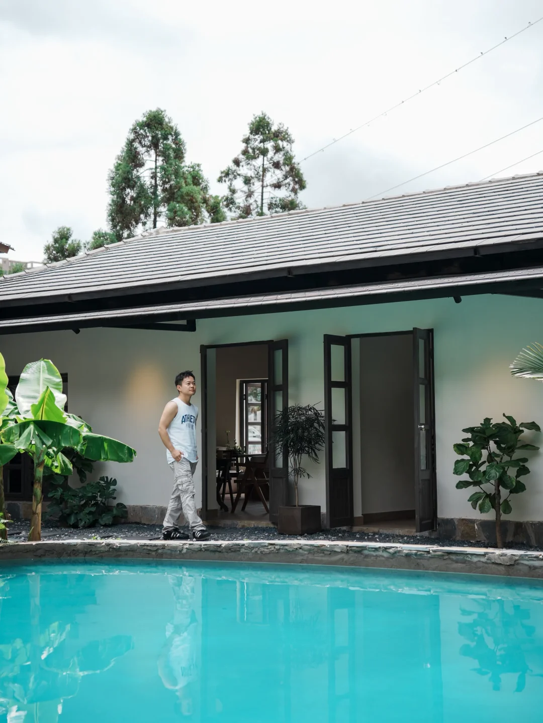 不出昆明市区 也能一秒拍出泰兰德大片 小院真的太Chill了 巨大的果冻水池 完全可以在这里呆上一天 换上度假🏖️衣服真的很好拍! 📍位置:五华区虹山东路