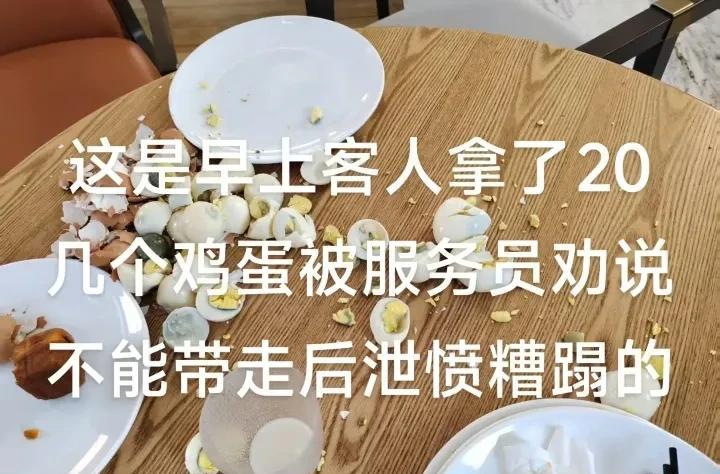 免费吃了早餐,还剥了二十来个鸡蛋准备带回家吃,这是什么逻辑,是酒店上辈子欠这个恶妇的吗?