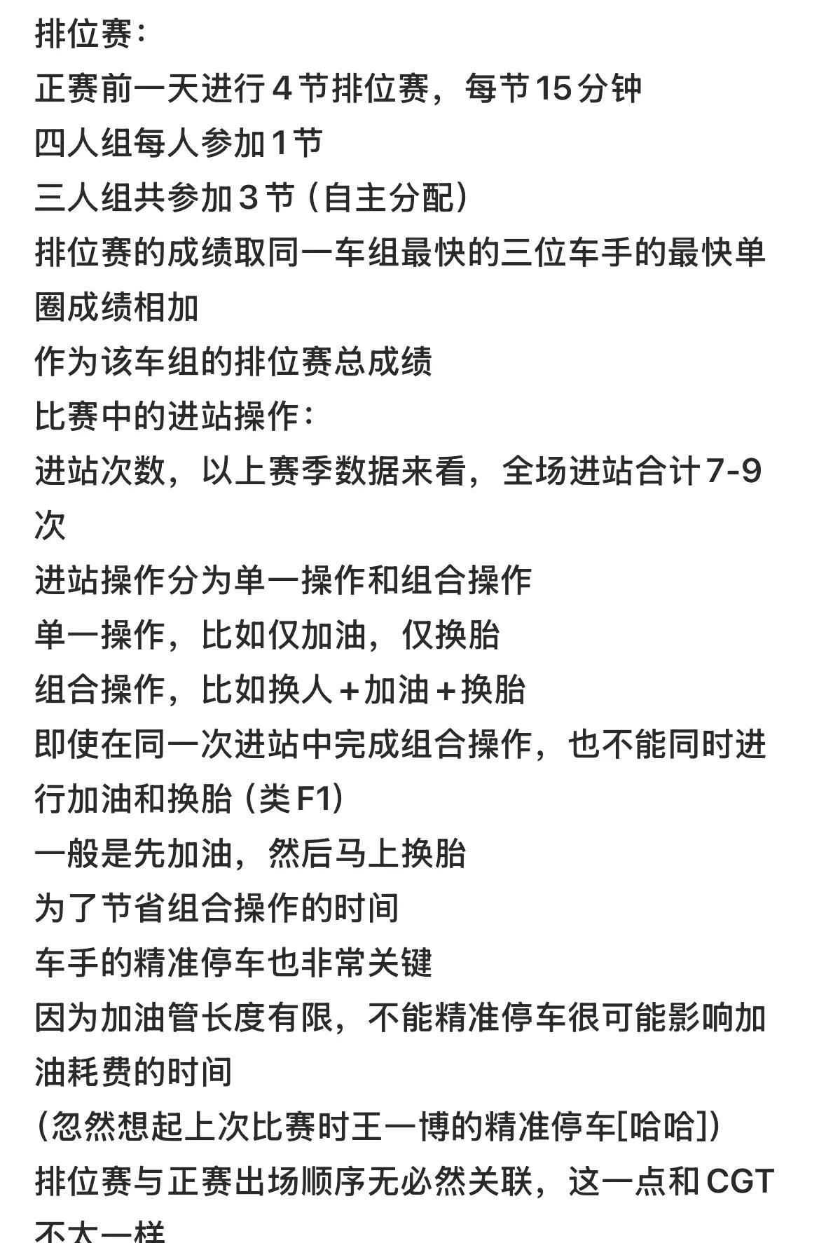 王一博十月确定参加比赛,那么,巴黎还去吗? 毕竟时间很紧,要飞那么远。 不了解什么是八小时耐力赛的朋友看过来。(图四图五) 看完介绍我现在就有点小紧张,没有强大的心理素质和体力,安排不好长达八小时的比赛。 Uno车队这次是三个人参赛。 虽然我们粉丝担心,但是粉丝相信一博的能力,就是希望他不要太辛苦。 希望他安心参赛,工作别安排的那么紧。 #今日所见所闻# #你是如何入坑王一博的#