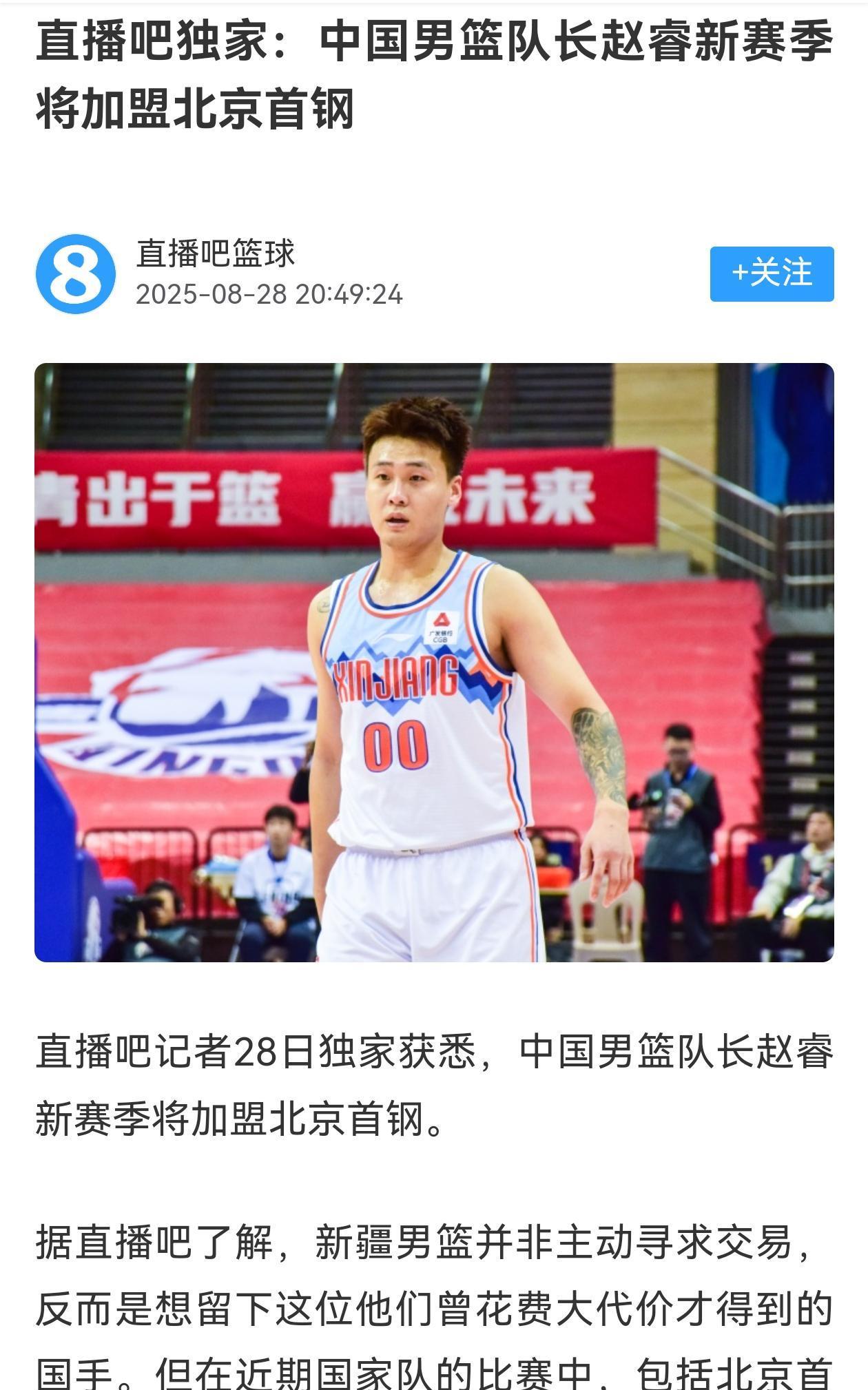 恕我不吐不快,赵睿降薪加盟北京,如果开这个口子,那BCD合同分类就毫无意义了,国家队队长签大C,这事不简单,CBA要提前大结局,赵睿加盟北京!周琦+曾凡博+赵睿+陈盈俊+雷蒙五大国手,下赛季还没开始就要宣布大结局,上海+广厦+广东哪里是对手,相当于联赛亚军又招募赵睿,这让其他对手还怎么玩,恕我直言不讳,范子铭大概率重返新疆队,陈盈俊、赵睿、杰曼,这后场组合无敌了,北京男篮国内球员注册信息完毕,还差一个赵睿没有官宣呢。不得不感慨一句,有国企背景的俱乐部真的大手笔,把竞争对手王牌主力都招入麾下。