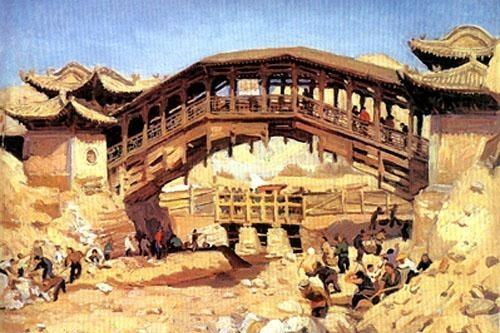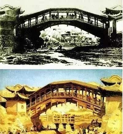 兰州握桥,见过人至少八十岁了! 兰州握桥位于兰州市城关区和七里河区之间的雷坛河上,大体位置在文化宫门口。这座桥的最早修建年代可追溯到唐代,人们认为这是仿鲜卑吐谷浑人的 “河厉” 桥形制。此后,历代多有重建。明永乐年间,建成伸臂木梁结构。清乾隆年间因战火洪水三毁三修。1952 年因兰州城市建设交通需求被炸毁拆除。此桥为典型伸臂木梁桥,先以筑石堤,再以横木为基,用7 根纵木斜挑成梁,如此叠加四层,后铺设桥面。桥上有 13 间桥廊,28 根朱红大柱支撑,桥头翼亭覆黑琉璃瓦,东亭题 “空中鳌背”,西亭题 “天上慈航”。兰州古有 “兰州八景”,其中“虹桥春涨” 即为此桥处,黄河与雷坛河形成的风景。张恨水 茅以升等人多有赞颂。 #兰州桥梁博物馆#