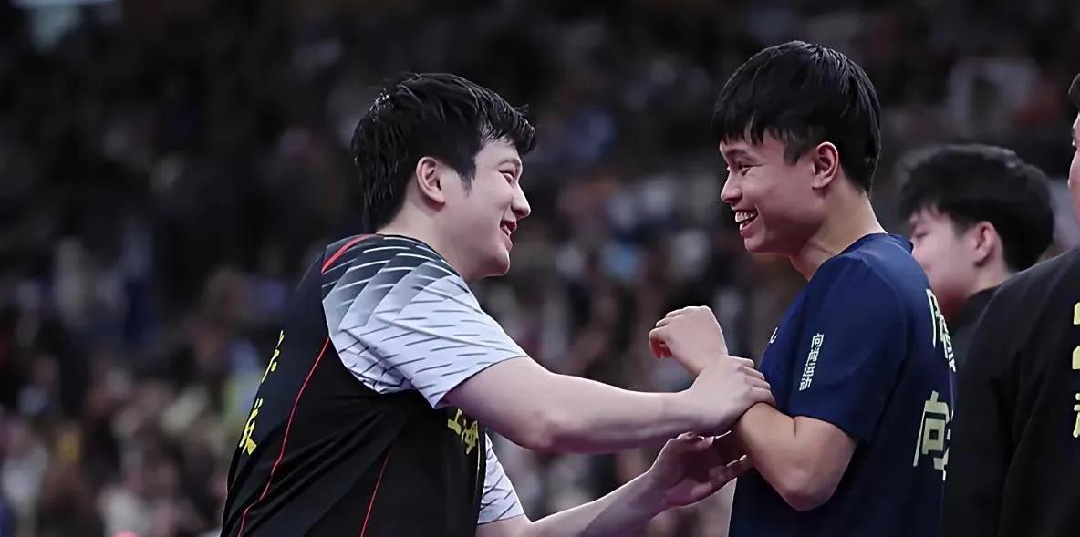 左1:儿童时期的樊振东和周启豪,就在一起练球。 右:长大后一起进入国家队成为了队