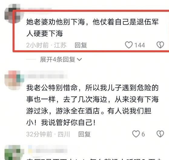 8月26日,在三亚溺亡的男子只有31岁,是从四川过去旅游的。台风刚过,他不听妻子劝阻,仗着退役军人身份下海游泳,结果真的就发生不测,众多好心人连番抢救也没能改变结局! 我们常常以为,越强的能力,就意味着越高的安全感,可事实上,很多时候正是这种“我能行”的自信,成了走向危险的隐蔽陷阱。 那天下午在三亚的一处海滩上,一个31岁的四川男人用生命给出了残酷的答案。 他曾经是一名军人,训练有素,体能过人,在家人眼里更是一个可靠的丈夫和父亲。 但就在那一天,他成了海浪下的遇难者,留给妻子和年幼的女儿的是无法愈合的伤口。 这背后到底哪里出了问题?为什么本该是护身符的身份和技能,反而成了致命的诱因? 那天台风“剑鱼”刚刚掠过三亚,海面依旧暗潮汹涌,浪头一波接一波地砸向岸边。 而岸边,妻子一次次劝阻,希望他能收起那份冲动。 可他似乎被一种自信裹挟着,以为能够战胜这片海。 可是他没意识到,海洋从来没有规则可言,它的力量是无法预测的,也是任何人类技能都无法完全掌控的。 再说到“会游泳”这个技能,很多人都有过类似的错觉:会水的人更安全。 可事实却是,淹死的往往是会游泳的人。 不会水的,天然对海有敬畏,他们懂得远离,不敢轻易下水。 而会水的人,总想去试一试,总觉得凭自己那点技巧可以化险为夷,反而在无形中跨过了安全的红线。 那位男子也是如此,当他迎着浪潮走进大海时,他低估了海的力量,高估了自己的能力。 古人早就告诫过,“欺山莫欺水”,这句话的智慧在今天依旧适用,水的危险不在于能不能游,而在于你是否怀着敬畏之心。 岸上许多人冲上来帮忙,人工呼吸,胸外按压,医护人员拼命抢救,所有的努力都没能把他拉回到妻子孩子的身边。 最残忍的一幕出现在妻子眼前。 她看到丈夫被抬上岸时的惨状,第一反应不是冲过去抱住他,而是立刻拉着年幼的女儿转过身去。 她想用自己的身体和崩溃的情绪,把那一幕彻底挡在孩子的世界之外。 她清楚,那样的画面对一个孩子来说,可能是一辈子都抹不去的阴影。 可转身之后,她终于再也支撑不住,扑倒在沙滩上,撕心裂肺地哭喊:“都说了不让你去!” 她也明白,从丈夫选择无视警告走进大海的那一刻起,孩子的未来就只能靠她一个人撑起了。 这场悲剧,不仅击碎了一个家庭,也重重敲响了所有人的警钟。 人类的能力再强大,也永远有边界,而跨过边界的那一刻,等待的很可能就是无可挽回的代价。 信源:封面新闻
