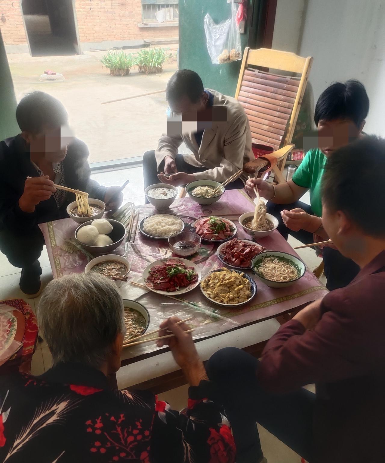 今天是农历的七月初七七夕佳节,我妈妈85岁的生日。我们兄弟姐妹四人难得地聚在一起,给我妈庆祝85岁生日。 今天刚好是礼拜五,所以在外地上班的侄儿侄女,外甥和外甥女们因为上班不能赶回来给奶奶过生日。往年他们有空的话都会赶回来给我妈过生日。 又因为今天下雨,我们不打算去镇上饭店吃饭。我姐和我打电话沟通了一下,决定由我在超市买些简单的熟食,回去稍微加工一下,省得做饭麻烦。 早上九点多一点,我就去超市卖肉的摊位,买了一大块猪头肉,两小块牛肉,又买了两个粗的火腿肠。再买了一盒醪糟,这就是四个菜了。 我本来想买两袋袋装的龙须面,但是一想,干面不容易熟,如果是鲜面条的话,更容易熟。 我就去了卖鲜面条的摊位。仔细看了看,问摊主有没有细一点的面条,可以吃臊子面的那种。摊主说有啊!这种就是。 我说你拿一条让我看看面条粗细怎么样?她拿给了我一条,我一看还可以。就买了三斤多的细面条。 虽然没有买生日蛋糕,但是我买了15块钱的鲜蛋糕。可以保存几天的,我妈可以当零食吃。 不到十点,我和孩子就到了我妈那儿。门口放着一辆白车,应该是大哥先回家来了。 我一进门就放下东西,和我妈说了几句话,就去厨房忙起来了。我把牛肉,猪头肉,还有香肠都切好再装盘。然后淘洗韭菜切韭菜准备臊子。 准备好了这些,我又开始拿拖把拖我妈房子和外面大厅的地板。一切都准备好了的时候,我姐穿着雨衣骑车来了。 我姐给我妈买了香蕉牛奶,我大哥买了面包,烙面。我姐放下东西说是厨房不干净,又开始洗碟子洗碗忙个不停。 下午一点多我们四个人还有我儿子和我妈,我们六个人难得聚在一起吃了一顿生日饭。这个场景让我差点流下眼泪来了! 记得小时候我们一家六口人就这样经常围着桌子坐在一起吃饭。如今几十年过去了,现在再也没有这么一大家子人聚在一起吃饭的时候了! 我妈也说,平时只有她一个人在家里太寂寞了,今天这么多人回家来,她很高兴。 吃完饭我们几个人又坐在一起聊了很长时间,然后我和我姐洗锅洗碗收拾东西,给我妈把剩下的东西放在冰箱里。我妈又打开柜子让我和我姐把她要穿的秋天的衣服拿出来给她整理好。 四点多的时候,我们同时出发,我姐骑车回她家,我和儿子回我家,我大哥回他县城的家。我二哥和我妈只隔了几家。每年我妈生日的这天,我们一家都会聚在一起吃饭给她庆祝生日。 每次聚会结束回家时,我都恋恋不舍的,特别眷恋这种家的温馨,特别喜欢回味这种浓浓的亲情! 妈在,家就在!有妈才有家!愿我的老妈妈永远健康快乐!愿我们这个大家庭永远幸福快乐! #姑妈80大寿# #外婆送七月七# #八十五岁又怎样# #九十二岁外婆# #今天奶奶真高兴# #八十二岁妈妈#
