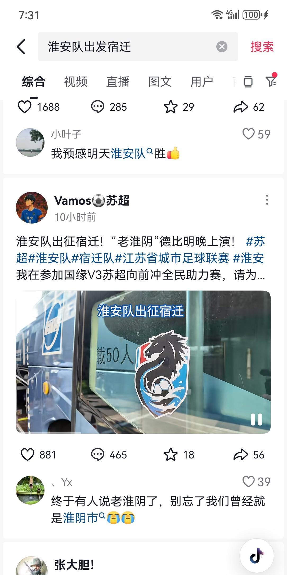 苏超淮安队球员坐着大巴已经抵达宿迁。球迷应该是明天中午坐高铁前来。宿迁文旅也开始