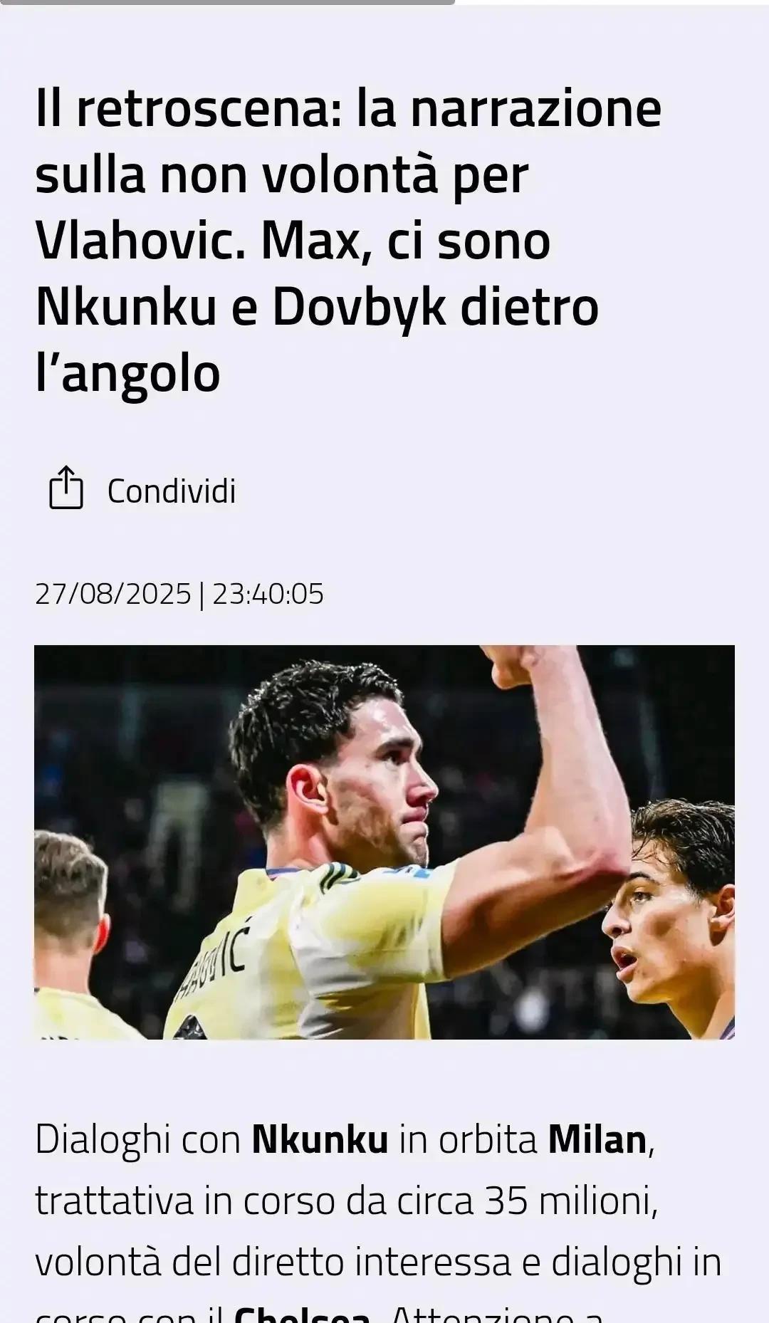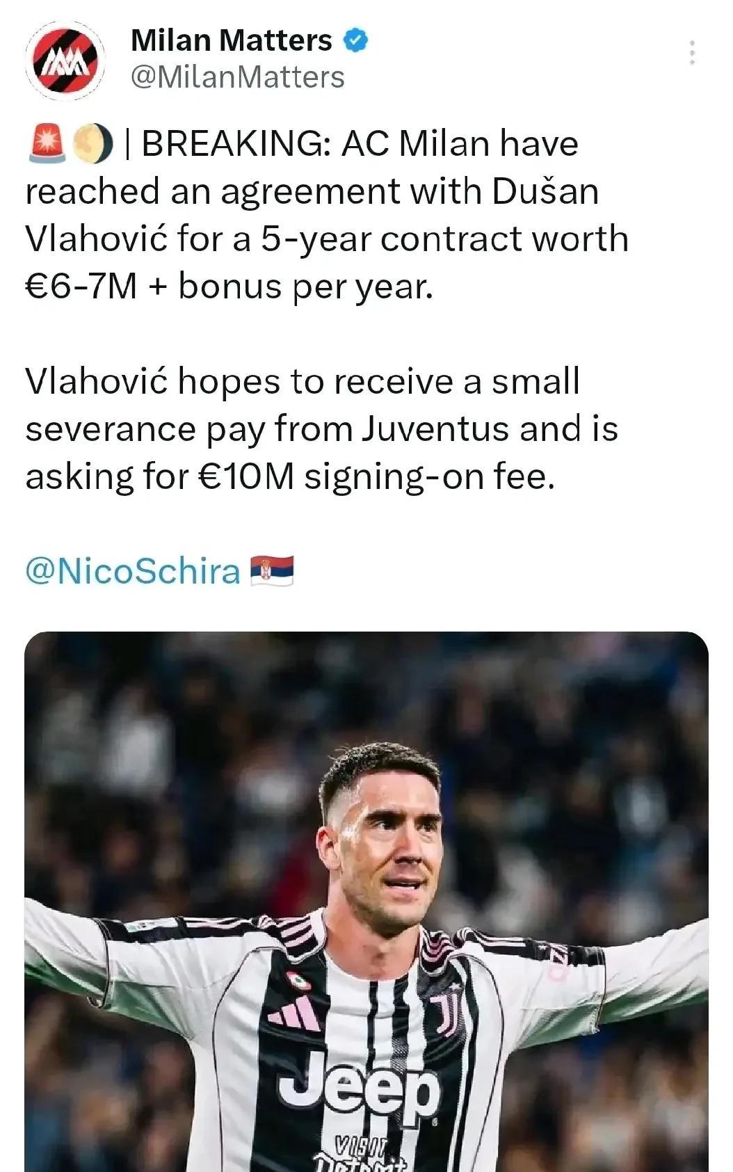 弗拉尼会计明确表达了弗拉霍维奇不是米兰的目标!虽然米兰与弗拉霍维奇已经达成一致,