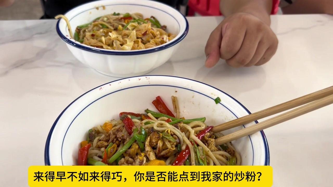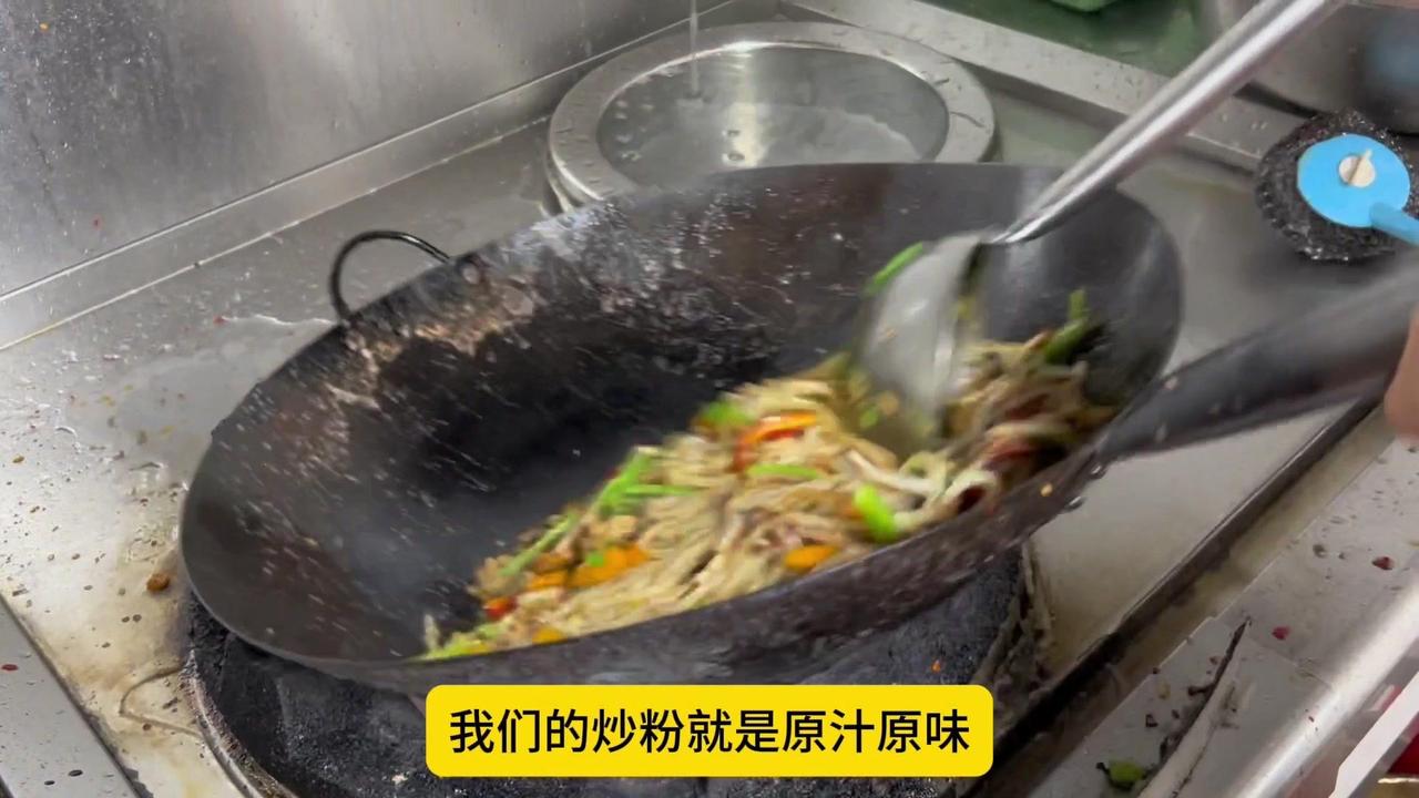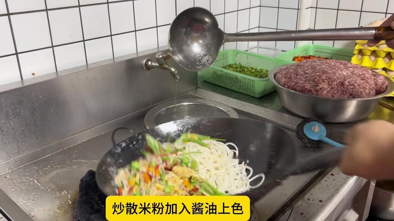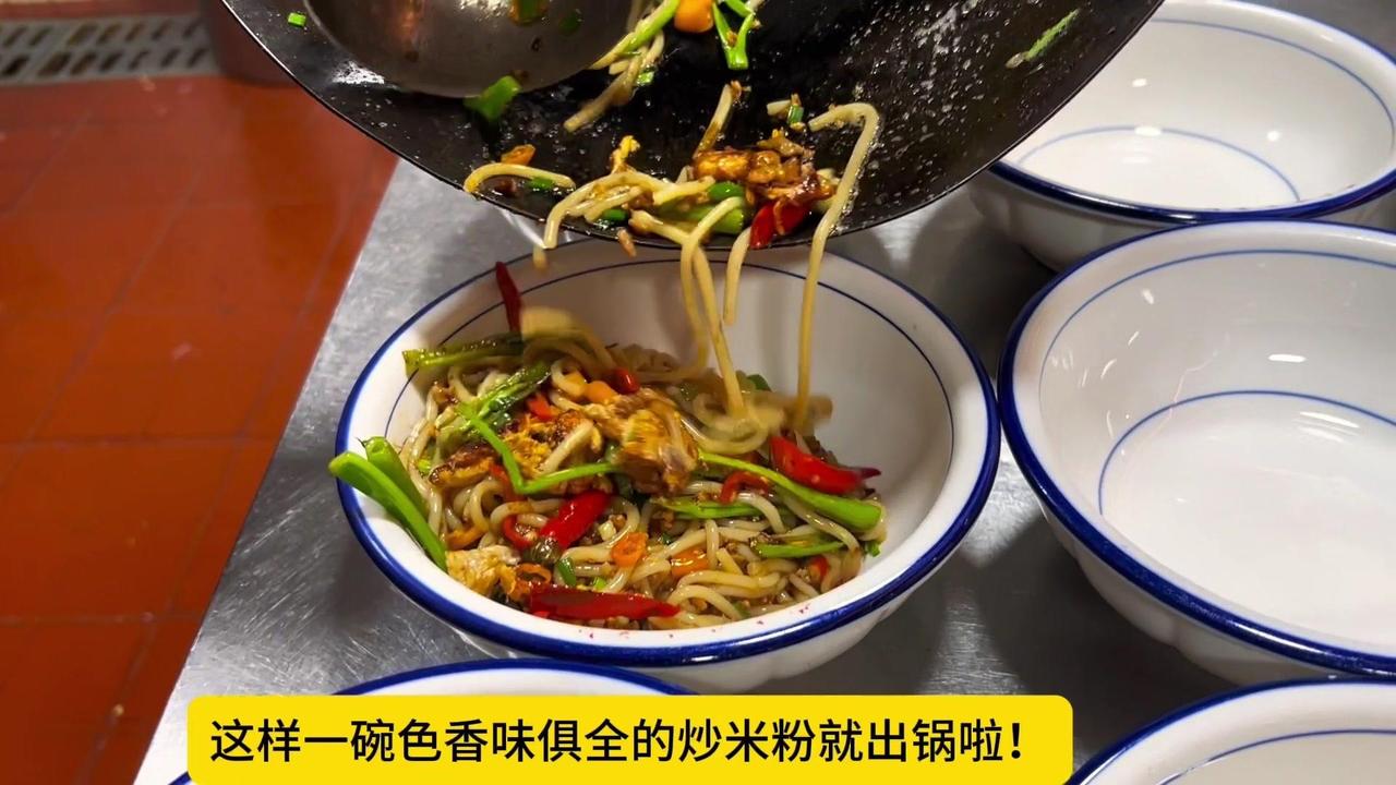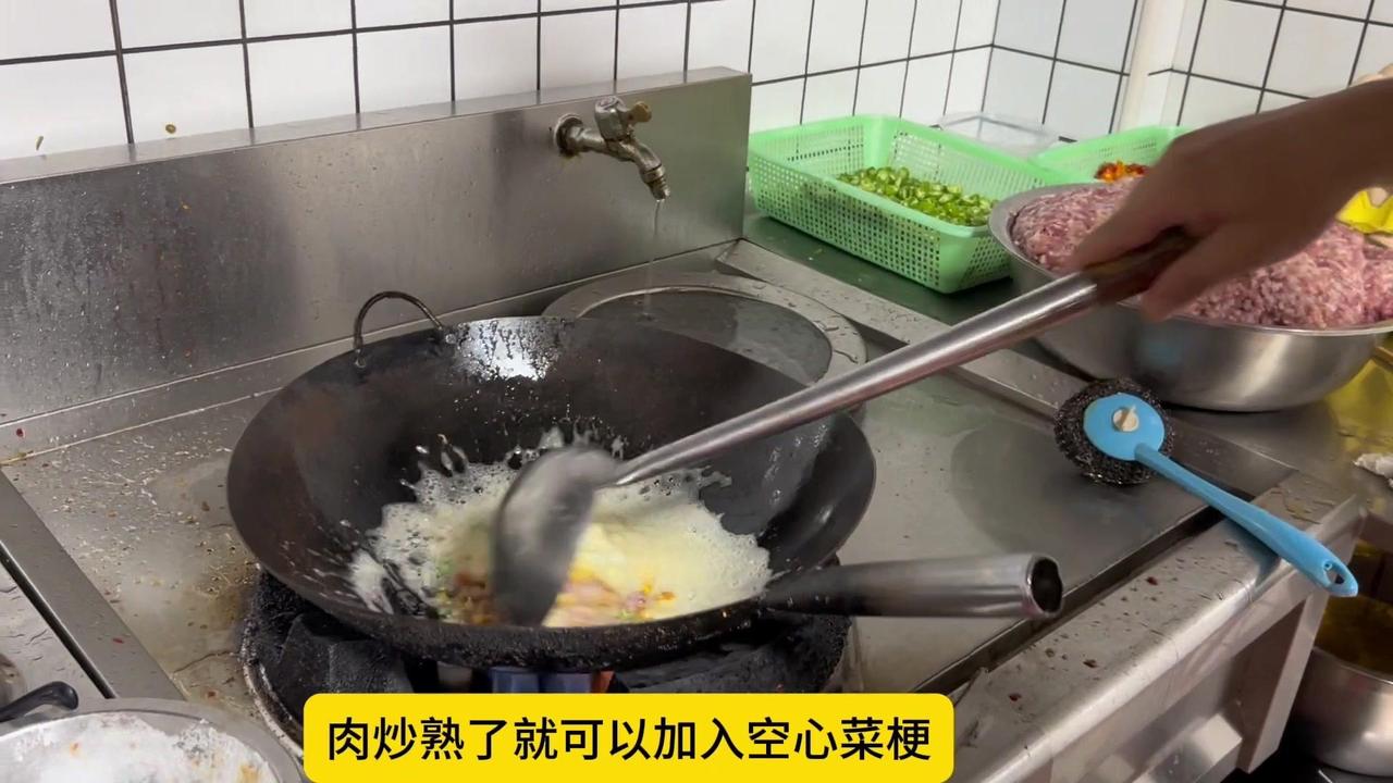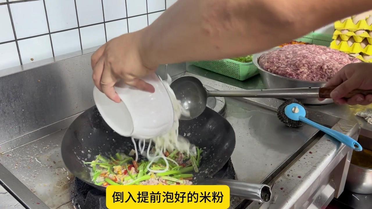 🍲空心菜梗加粉,一道美味即可出锅!🍳步骤: 1️⃣鸡蛋爆香,加入青红辣椒,新鲜瘦肉,提鲜增色。 2️⃣肉炒熟后,加入空心菜梗,红辣椒段,增添色彩。 3️⃣加盐少许,倒入提前泡好的米粉,炒散米粉。 4️⃣加入酱油上色,酱油可以多一点,继续翻炒。 5️⃣我们是全程大火,炒粉就要炒出焦香味,不油腻不粘锅。 6️⃣最后一把灵魂葱花撒下去,又增加了几分香味。 🍲我们的炒粉原汁原味,不需要什么炒粉料,普通的油盐酱油就行,吃的这种食材本身的味道。 🍲这样一碗色香味俱全的炒米粉就出锅了! 🍲来得早不如来得巧,你是否能点到我家的炒粉!
