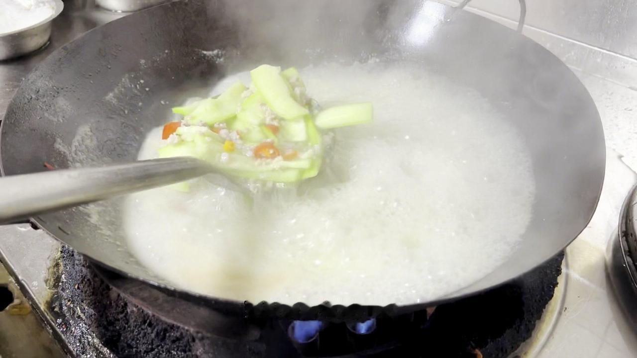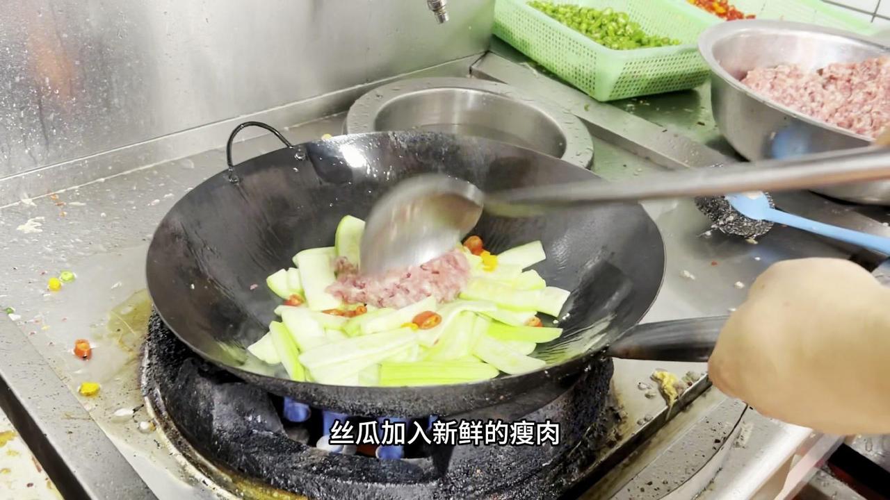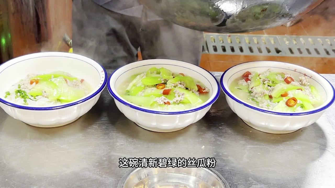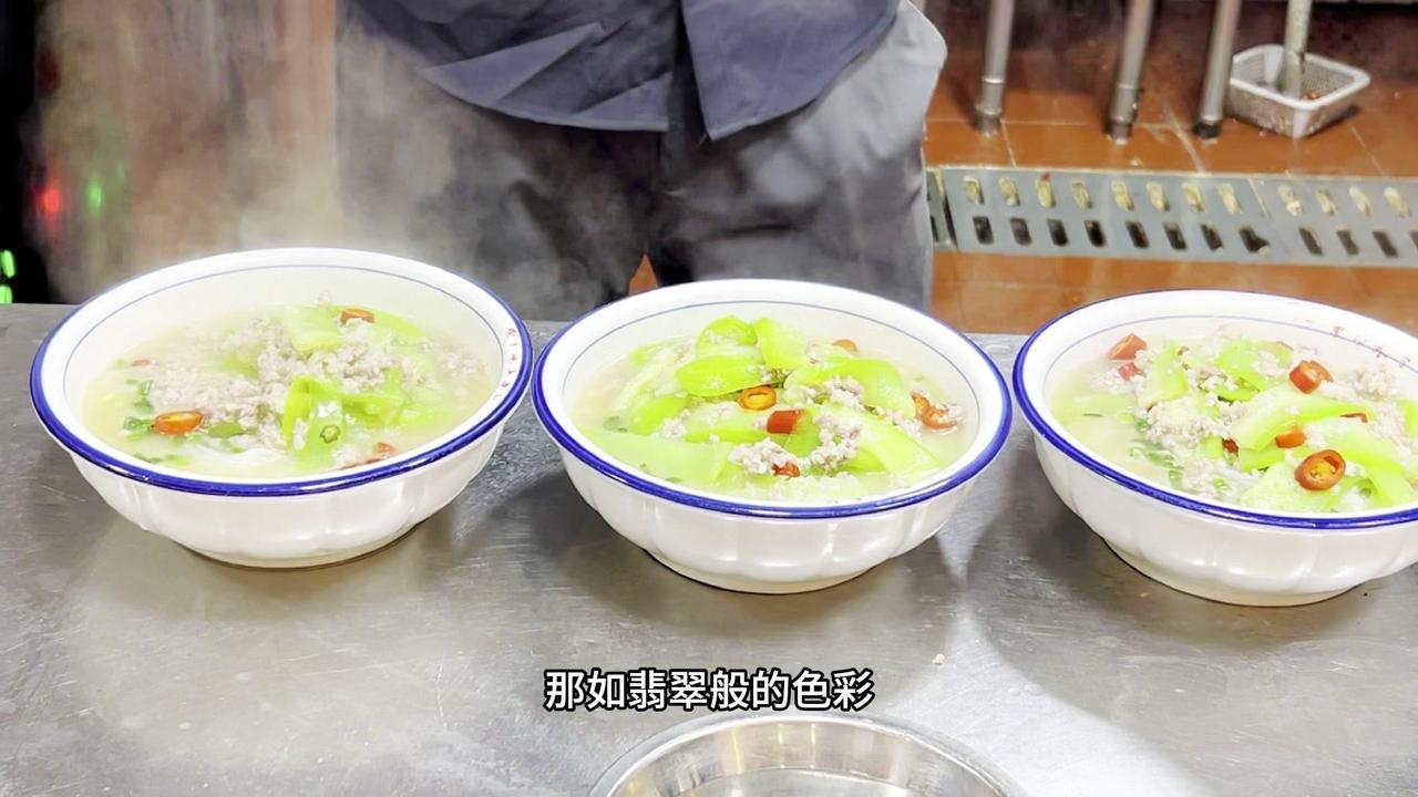 🍲清新碧绿的丝瓜粉,一出锅就吸引了大家的目光! 🍲首先,我们要选择这种肉质厚实的丝瓜,这样的丝瓜汁水才多,煮出来汤就会甜。 🍲丝瓜加入新鲜的瘦肉,大火翻炒,放几颗红辣椒点缀,然后高汤焖煮,整锅汤都是清甜清甜的,仿佛把整个大自然的清新都融入锅里。 🍲那股清香弥漫开来,热气腾腾的丝瓜粉出锅了,让人迫不及待的想去品尝。 🍲丝瓜一入口,细腻的不可思议,仿佛能直接挖入喉咙,留下的吃了淡雅迷人的清香滋味。