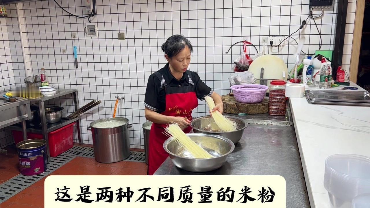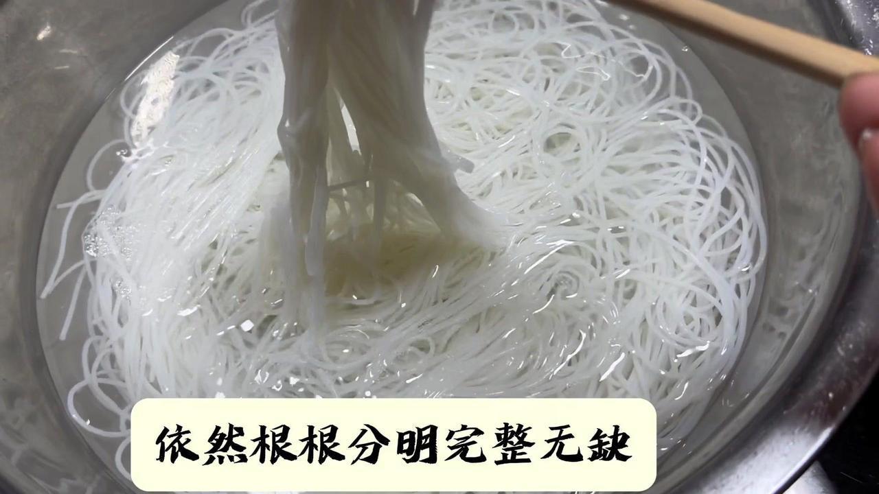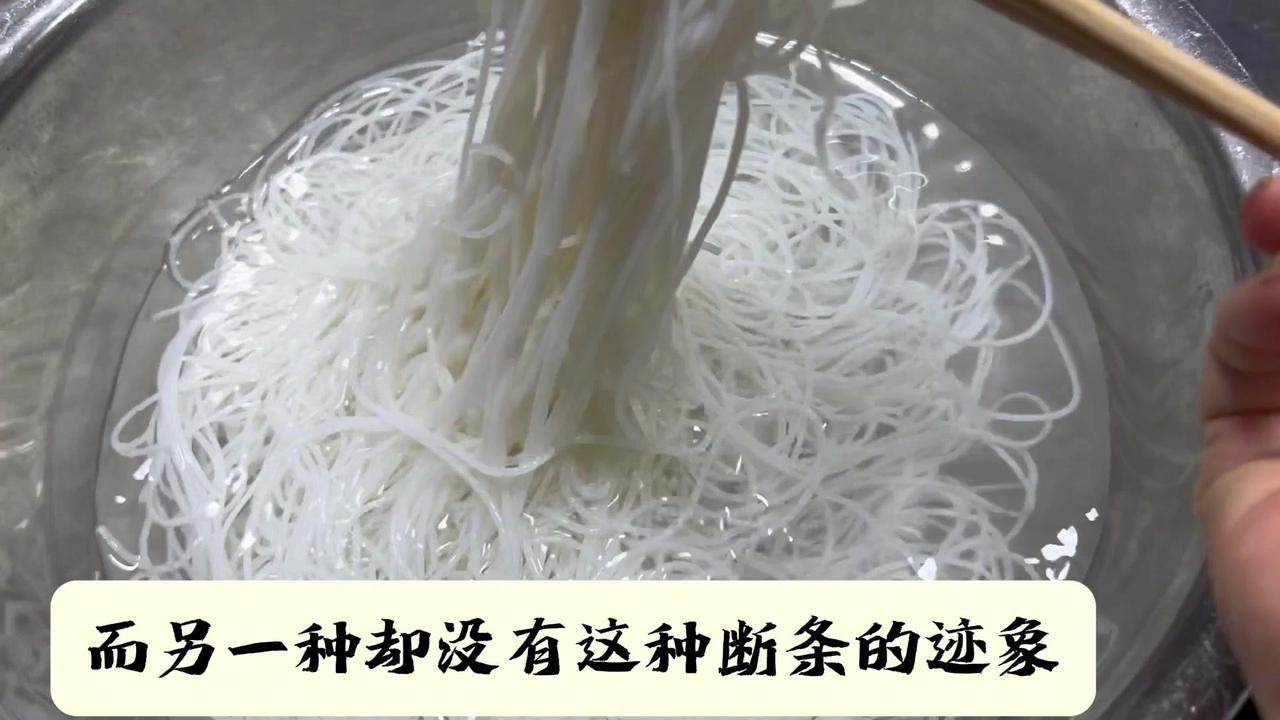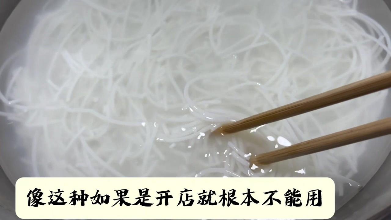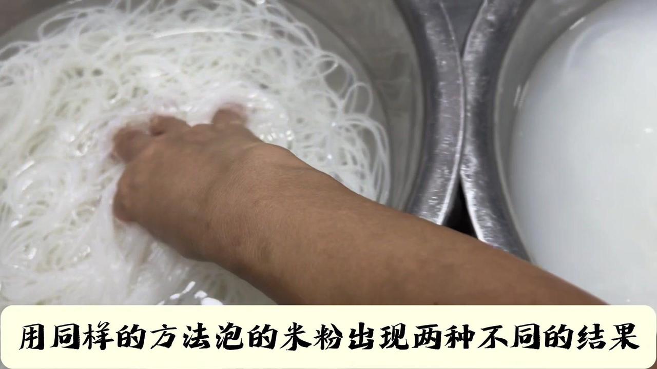 😱泡米粉惊人真相!🍜我泡了25年的米粉,今天发现一个惊人的秘密——泡米粉与你的手艺没有任何的关系! 🍲今天我们就来验证一下,这是两种不同质量的米粉,重量都差不多。下面我们用相同温度的水来泡,水温大约70-80度,用筷子搅拌,使米粉没入水中。 🍲另一种米粉也用同样的方法,搅拌好后用盖子盖起来,让米粉更快的泡发,中途搅拌一下,使它受热均匀。两种米粉用同样的方法,大约20分钟左右,再次观察,这时米粉能用手轻轻掐断,说明泡到这种程度就可以了。 🍲我们把米粉用冷水冲洗干净,再用冷水浸泡保存。另一种也同样做法,清洗干净保存起来。 🍲来测试一下,用手拉一拉,都有一定的弹性,现在看上去没有多大的区别,都是清清爽爽,柔软光滑。 🍲但是几个小时以后,你就发现一种开始断条,一节一节的,很多碎的,像这种如果是开店就根本不能用,而另一种却没有这种断条的迹象,依然根根分明,完整无缺。 🍲用同样的方法泡的米粉,出现两种不同的结果,从这一组数据的对比可以得出一个结论——泡米粉与你的手艺没有多大的关系,哪怕你的手艺再好,米粉质量不行还是会翻车。 🍲就像我泡了25年的米粉,也同样如此,米粉的关键还是要质量好,如果你找不到好的货源,可以来找我!