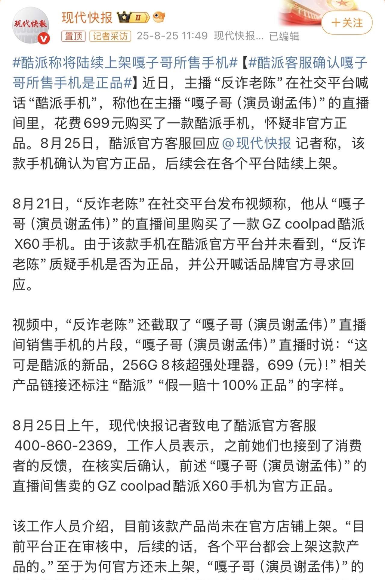 嘎子一直卖“假货”没人打,这好不容易卖一次“正品”,却被反诈老陈揪着不放了,吓的酷派官方吓的的女立马下架了手机产品。 因为这么一闹腾,很多网友直接开始去疯狂购买该款手机,搞不好最后还会退一赔三小赚一笔,突增的大量订单让官方都扛不住了,加上老陈已经第七次喊话,只能先下架手机暂避锋芒。 之前网友吐槽在嘎子直播间买的洋酒喝了一瓶,竟然没吹出来酒驾,那让嘎子备受打击,所以养精蓄锐,以后决定带一些质量不错的真品,这款高配置的手机颜值性能也比较不错,所以就被各方盯上了。 这款手机应该是嘎子直播间全网首发,就连刚上架的官网也是价格比嘎子直播间贵了100块钱,所以大家薅羊毛就行了,也没必要去讲究那么多。