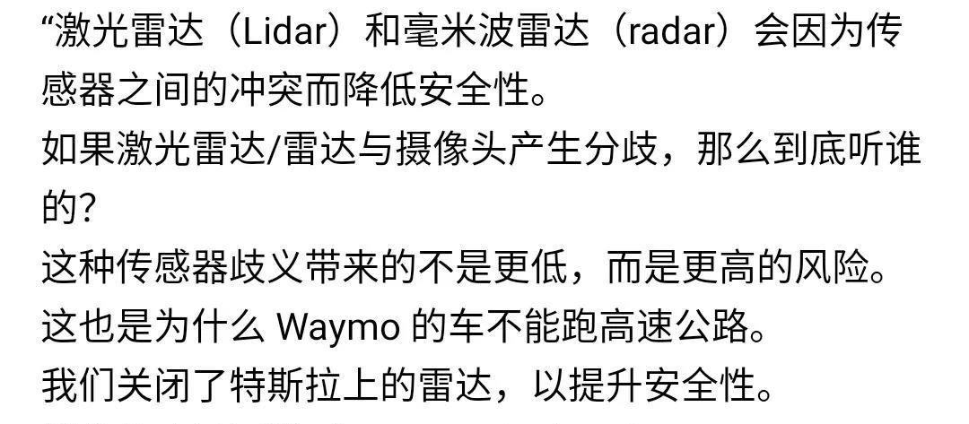 马斯克发帖, 解释为什么取消雷达, 只用摄像头。