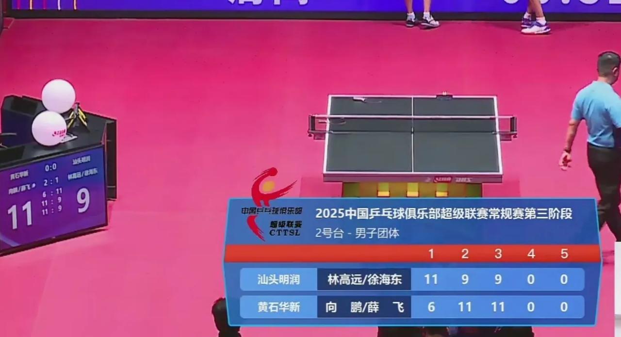 8月30日上午,乒超联赛第三阶段(乌鲁木齐),林诗栋领衔的黄石基地对阵林高远挂帅