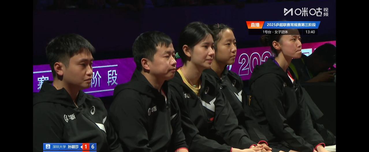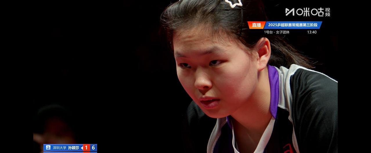 莎莎再次上场,对阵小师妹姚瑞轩。 今天深圳大学队,小蘑菇作为一单,却连丢两分,所幸蒯曼给凑了一分,不然深圳大学队就输了。 作为第五场的莎莎,原来以为看不到这场比赛的,这下只能再次上场了。 大家虽然愿意多看到莎莎打球,但是又担心她太累了,想让她多休息休息。 好在莎莎跟姚瑞轩的实力差距还是很大的。 很快,3:0莎莎拿下比赛。 可能第三局莎莎有点走神了,也许是饿了,小师妹多拿了几分。 #记录我的2025#